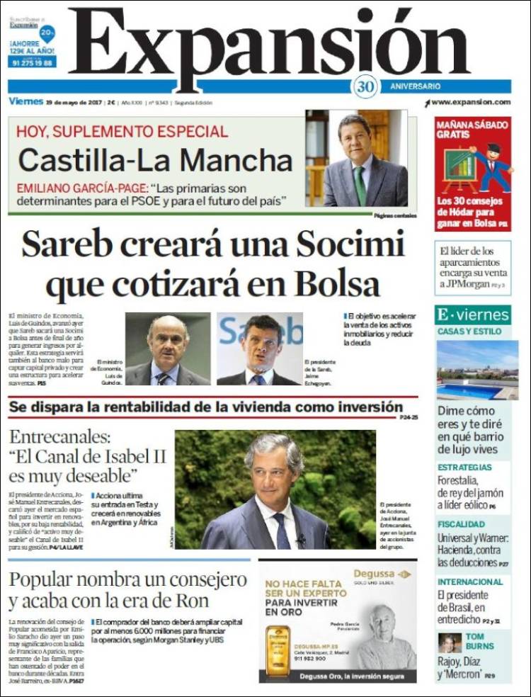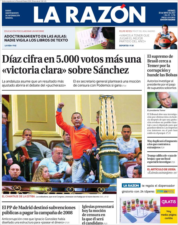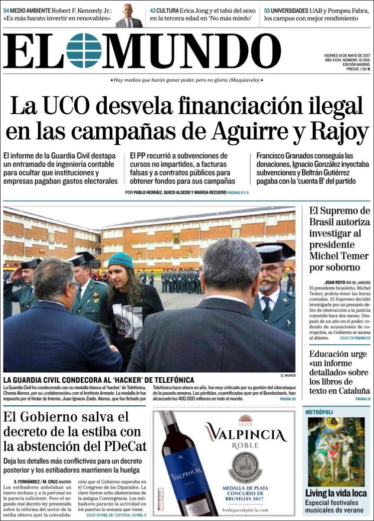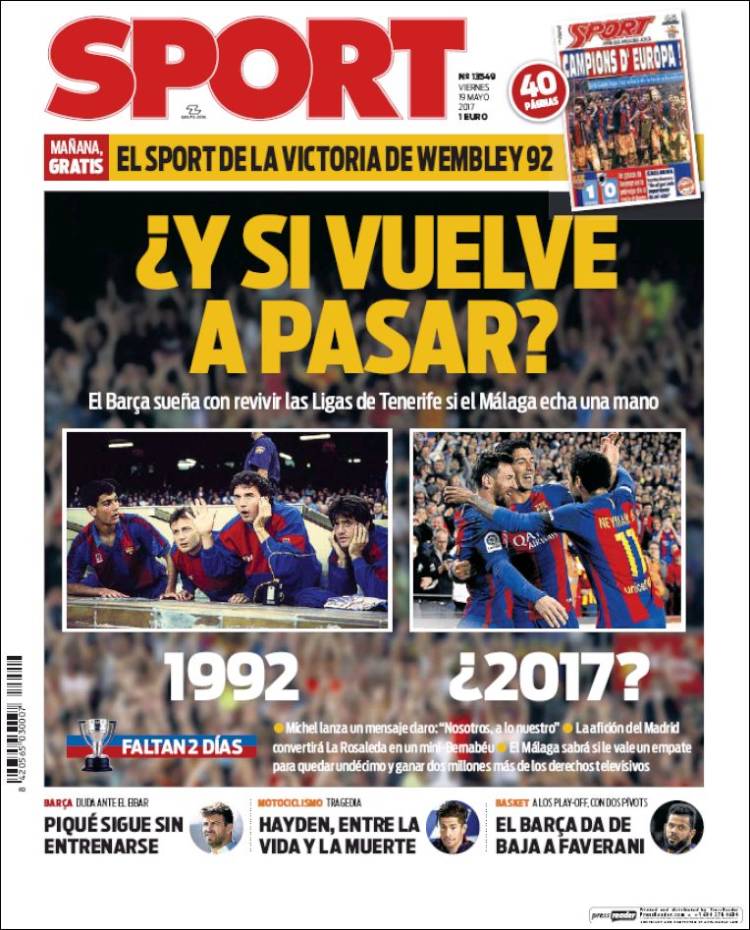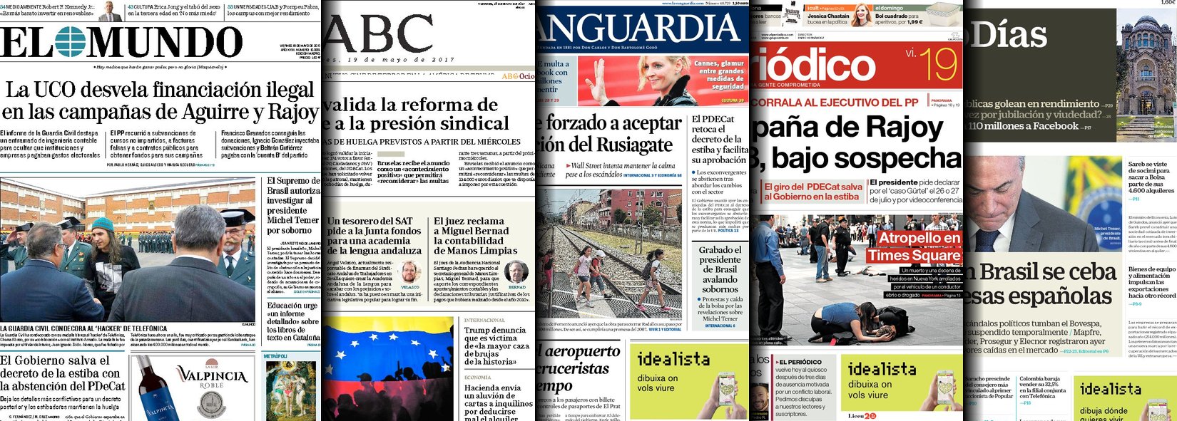 Portadas de los diarios El Mundo, El País, ABC, La Razón, La Vanguardia, El Periódico, Cinco Días, El Economista, Expansión, Marca, As y Sport.
