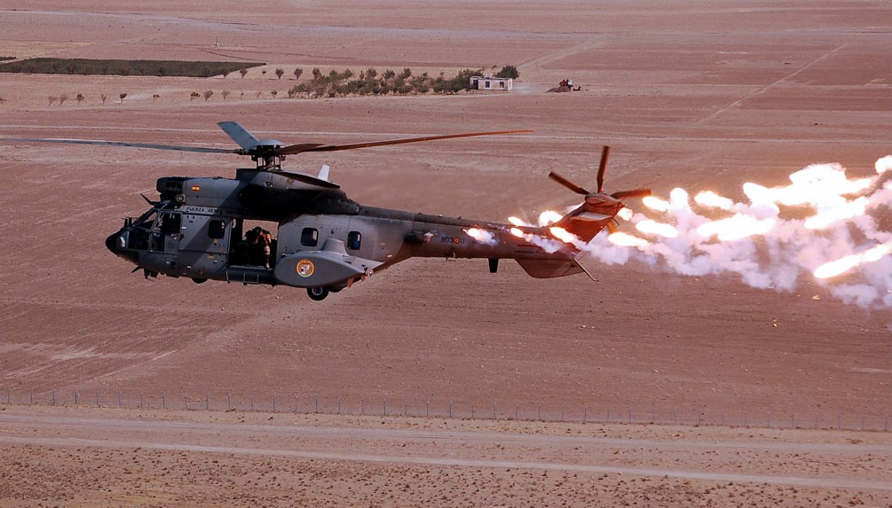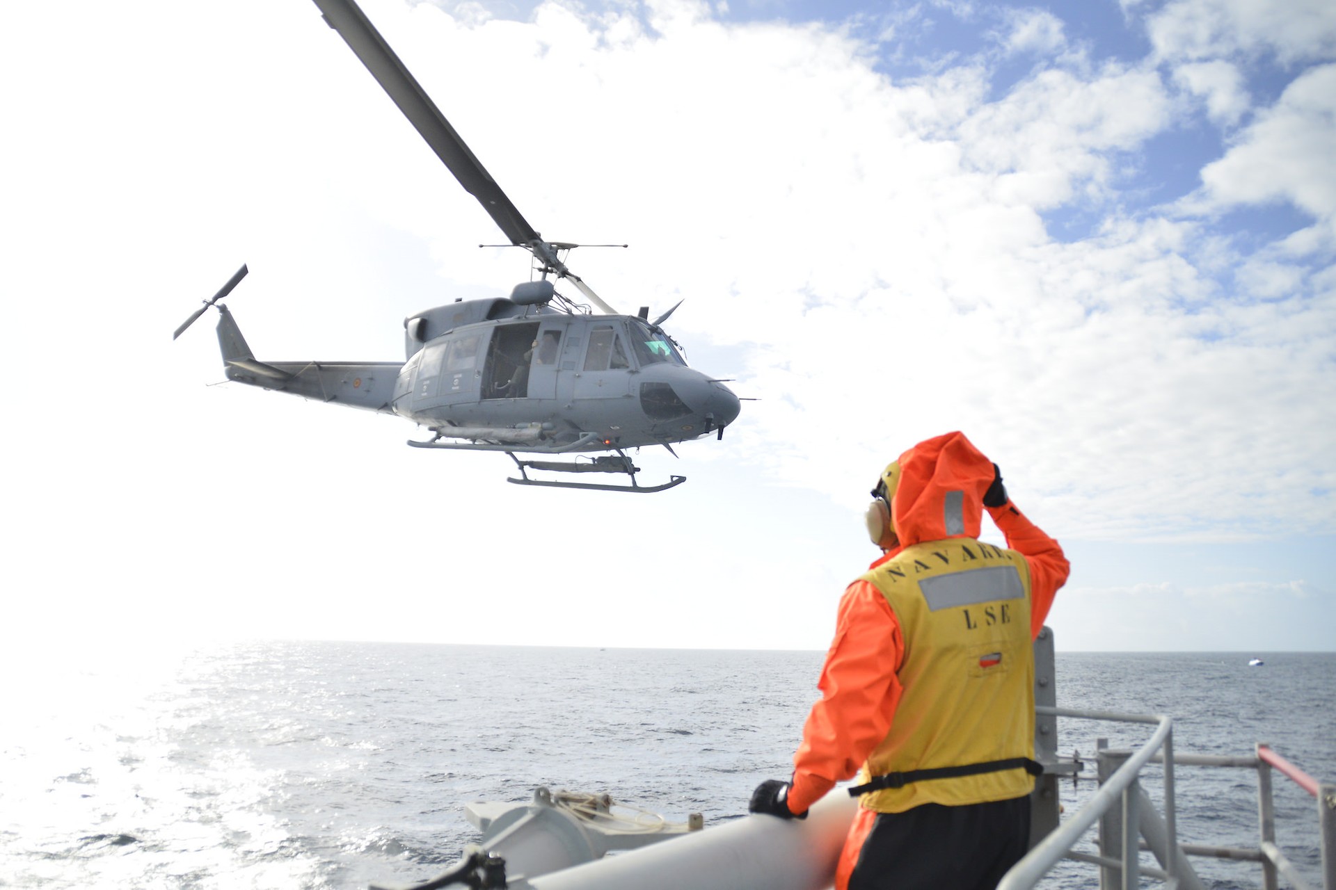Helicóptero AB212 de la Armada visto desde la fragata F85 Navarra.