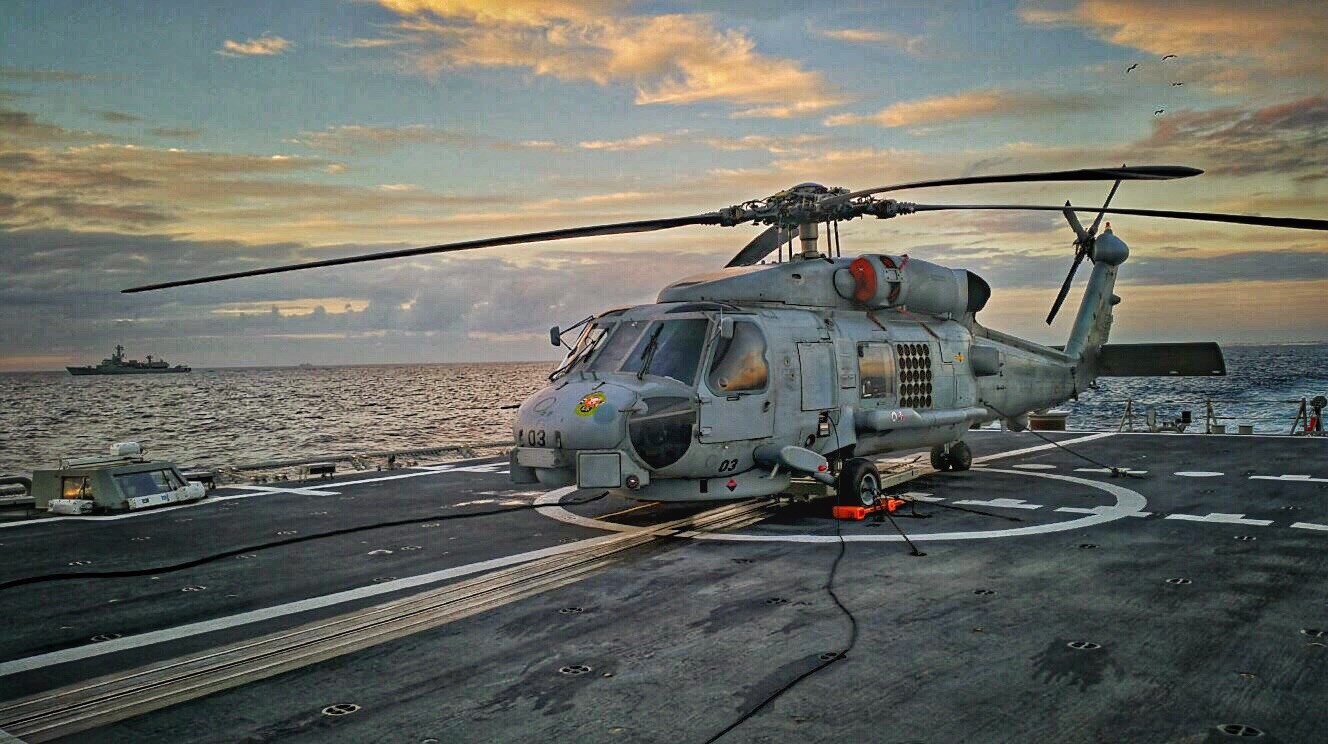 Helicóptero SH60B sobre la cubierta de vuelo de una fragata F100.