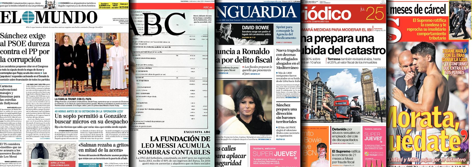 Portadas de los diarios ABC, As, El Periódico y La Vanguardia.