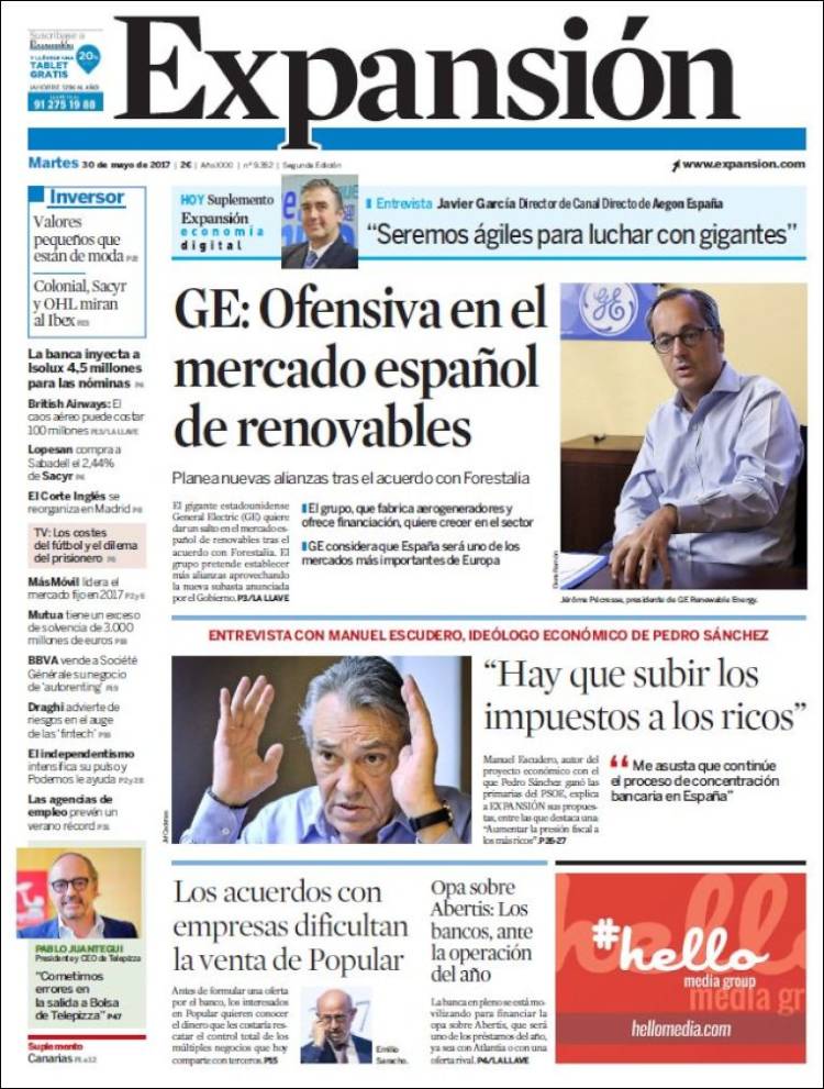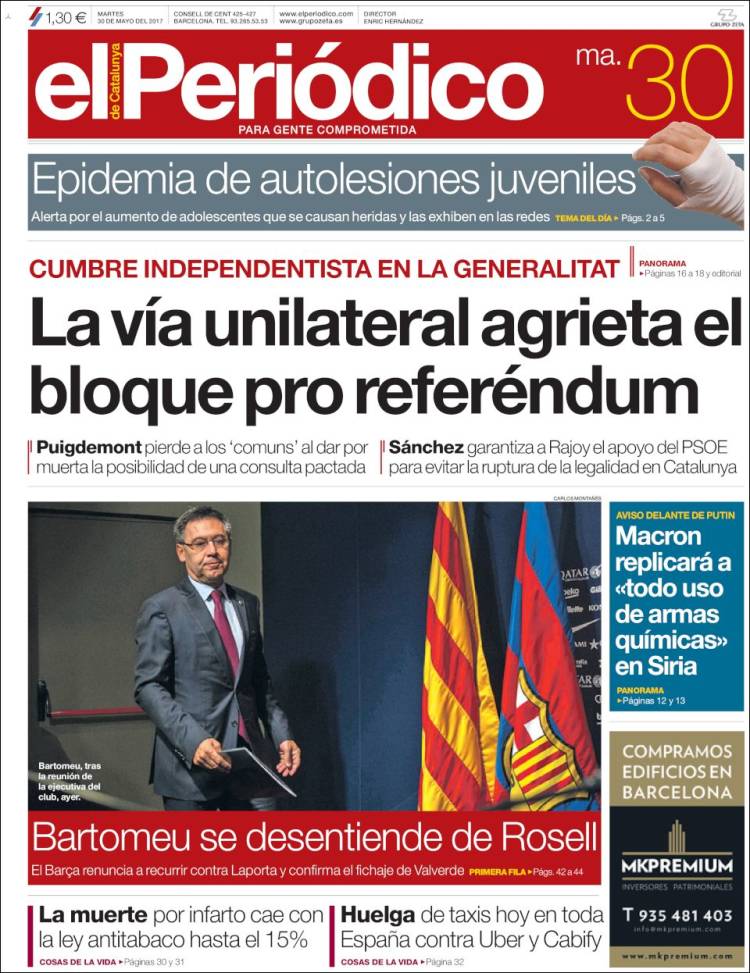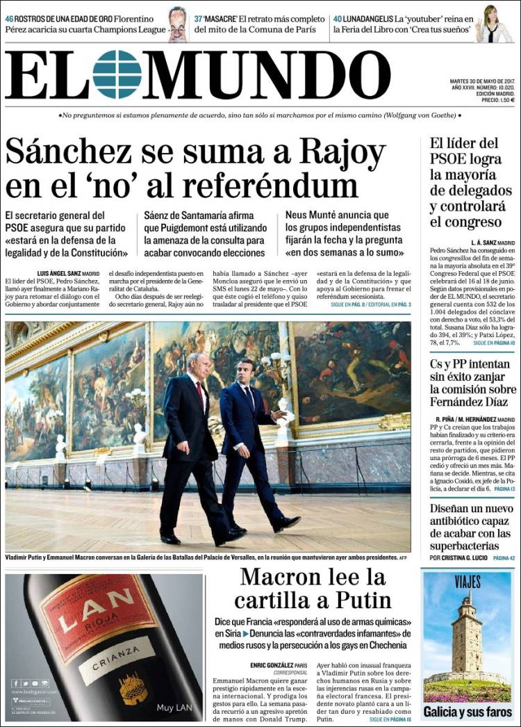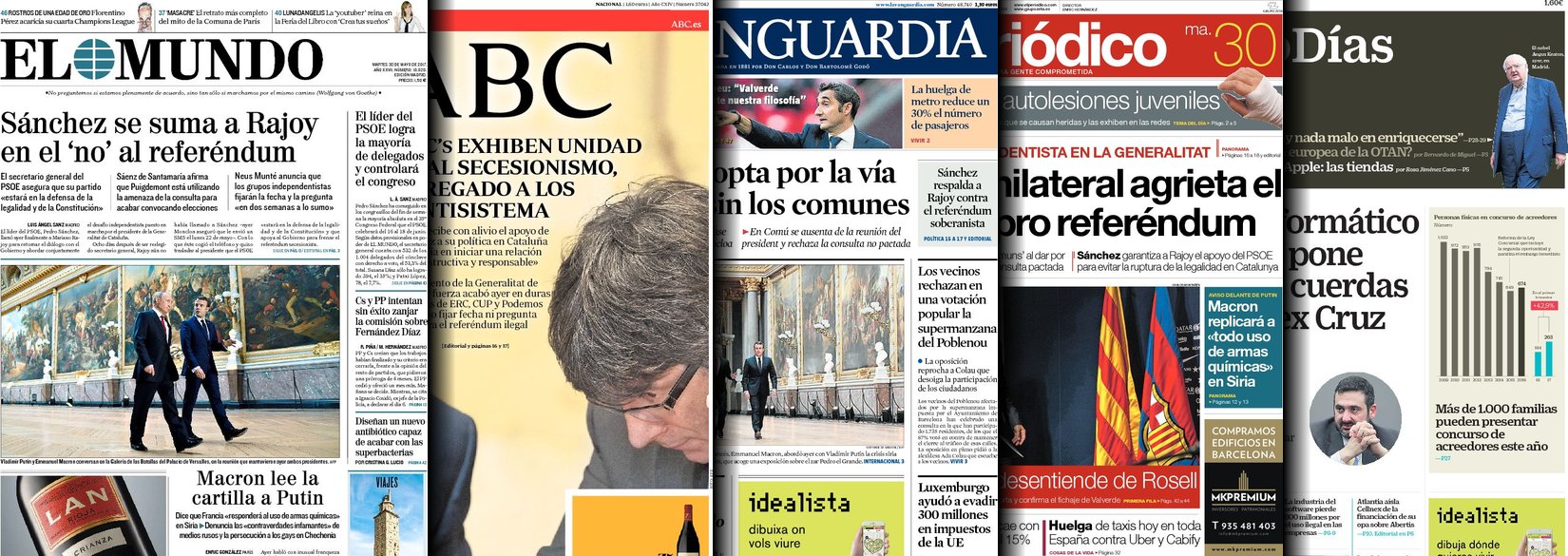 Portadas de los diarios El Mundo, El País, ABC, La Razón, La Vanguardia, El Periódico, Cinco Días, El Economista, Expansión, As, Mundo Deportivo y Sport.