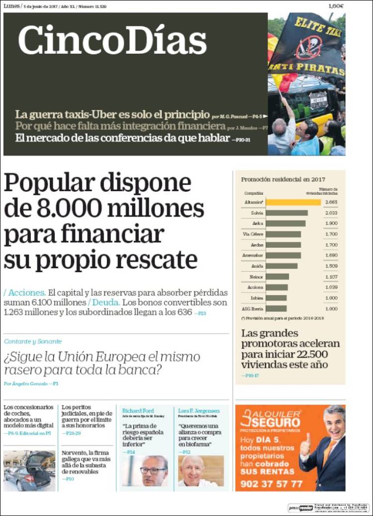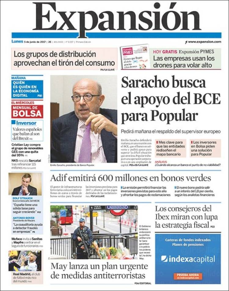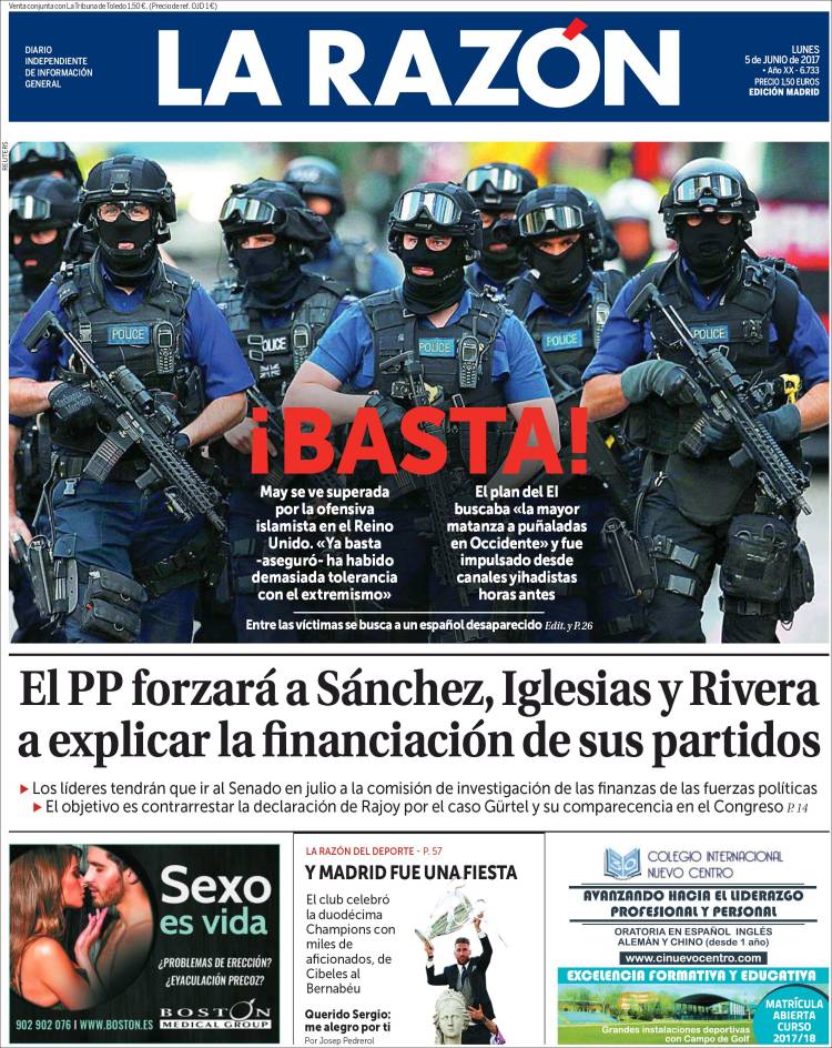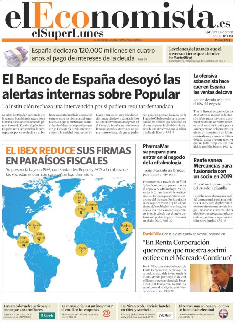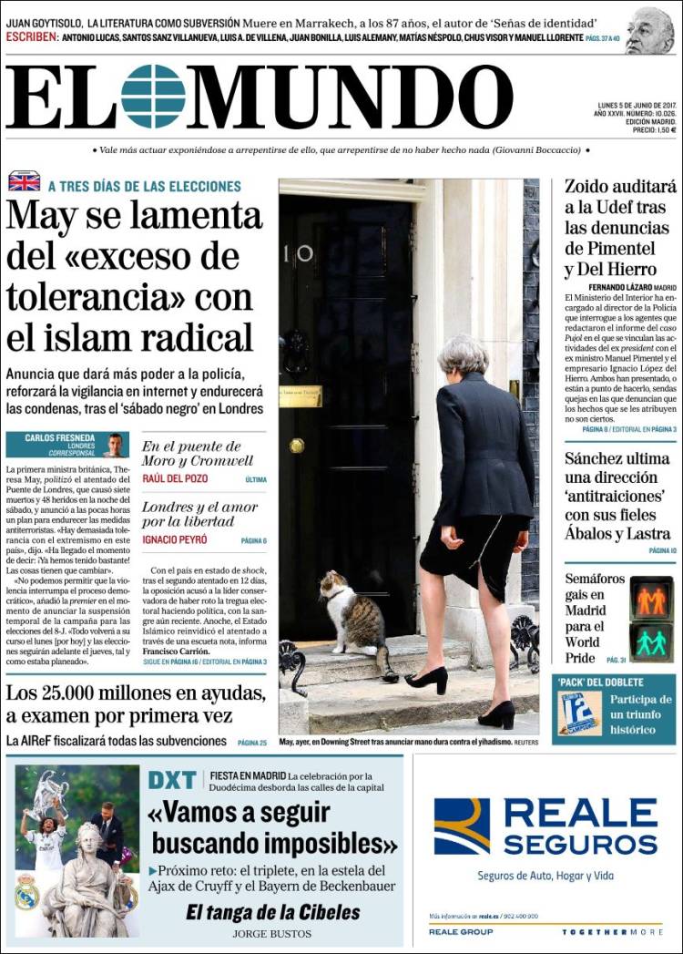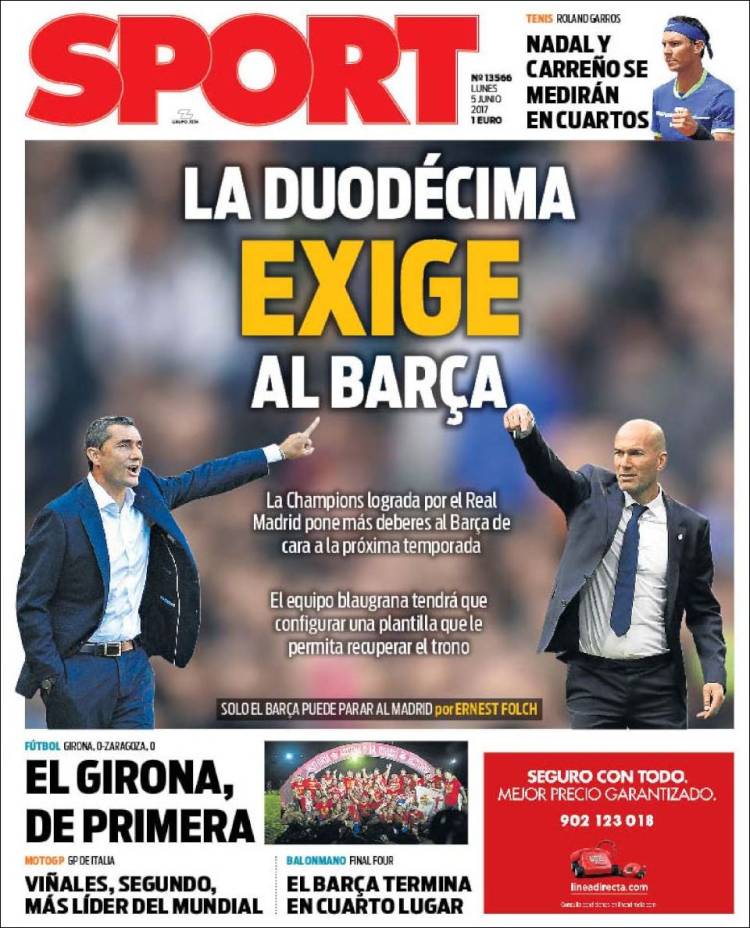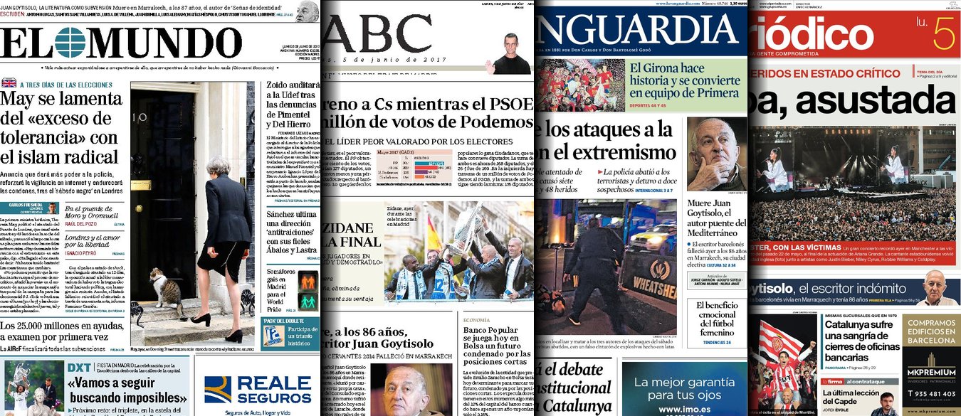 Portadas de los diarios El Mundo, El País, ABC, La Razón, La Vanguardia, El Periódico, Cinco Días, El Economista, Expansión, As, Mundo Deportivo y Sport.