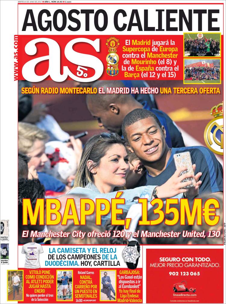 Portadas de los diarios El Mundo, El País, ABC, La Razón, La Vanguardia, El Periódico, Cinco Días, El Economista, Expansión, As, Mundo Deportivo y Sport.