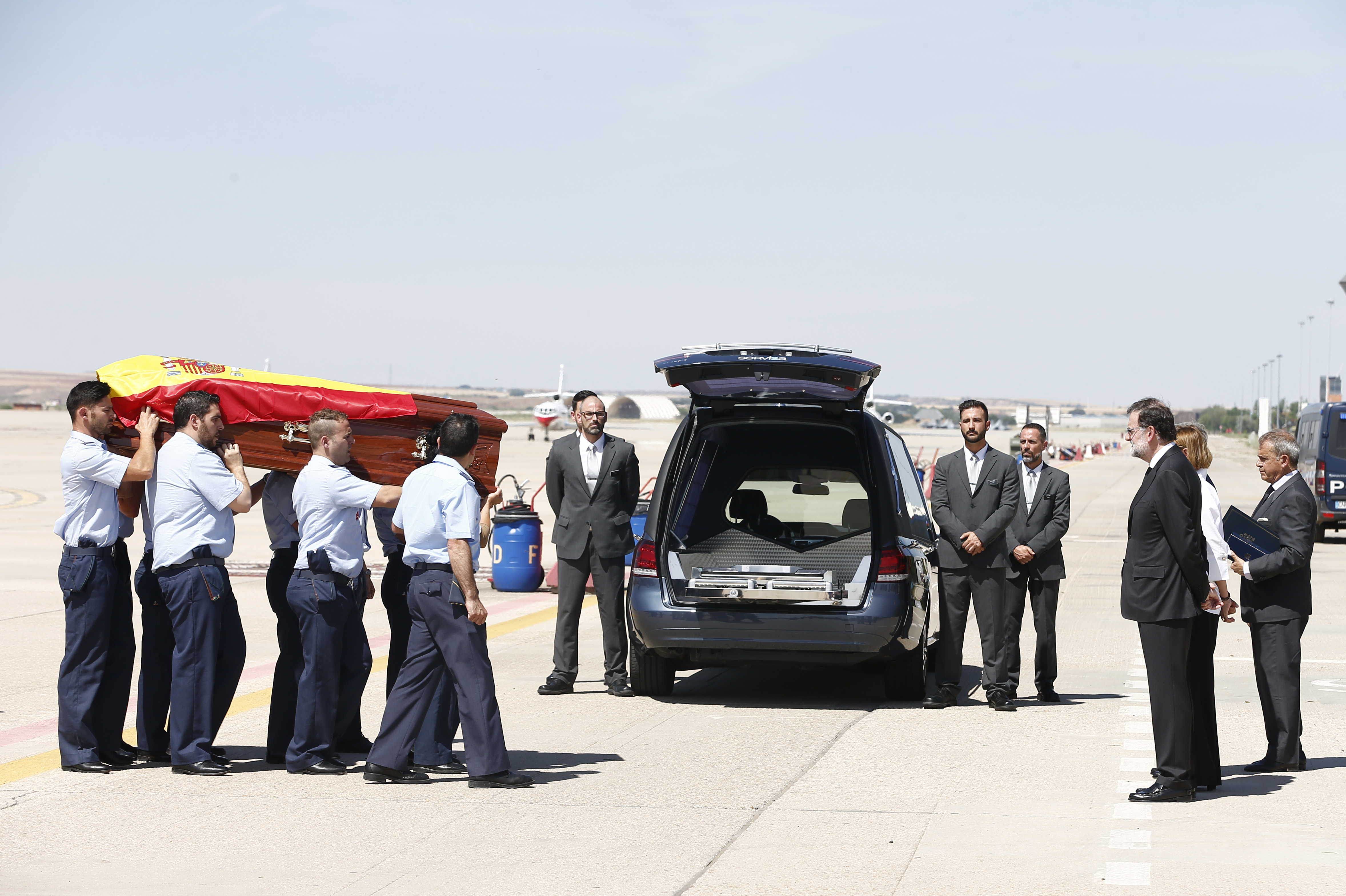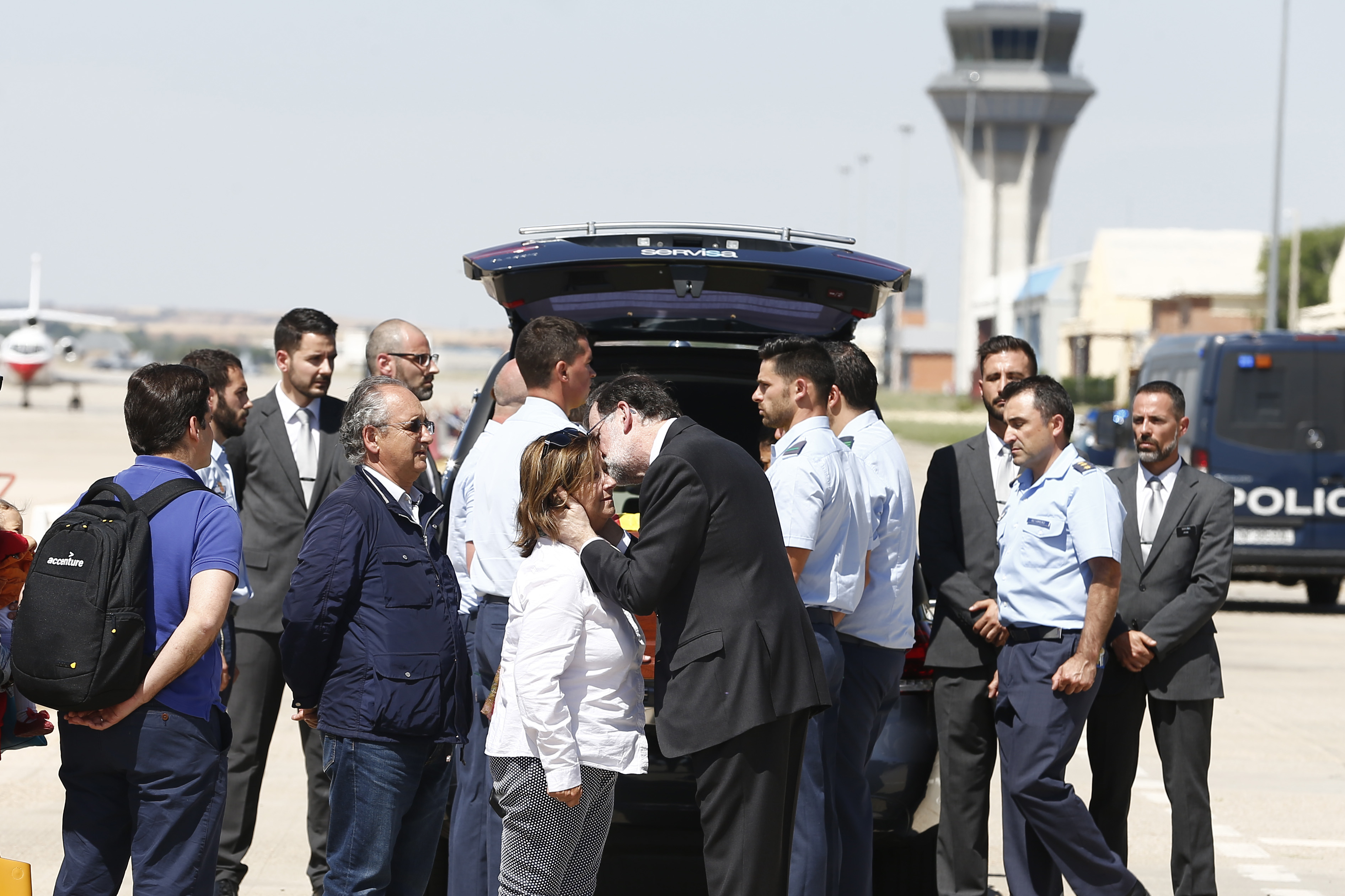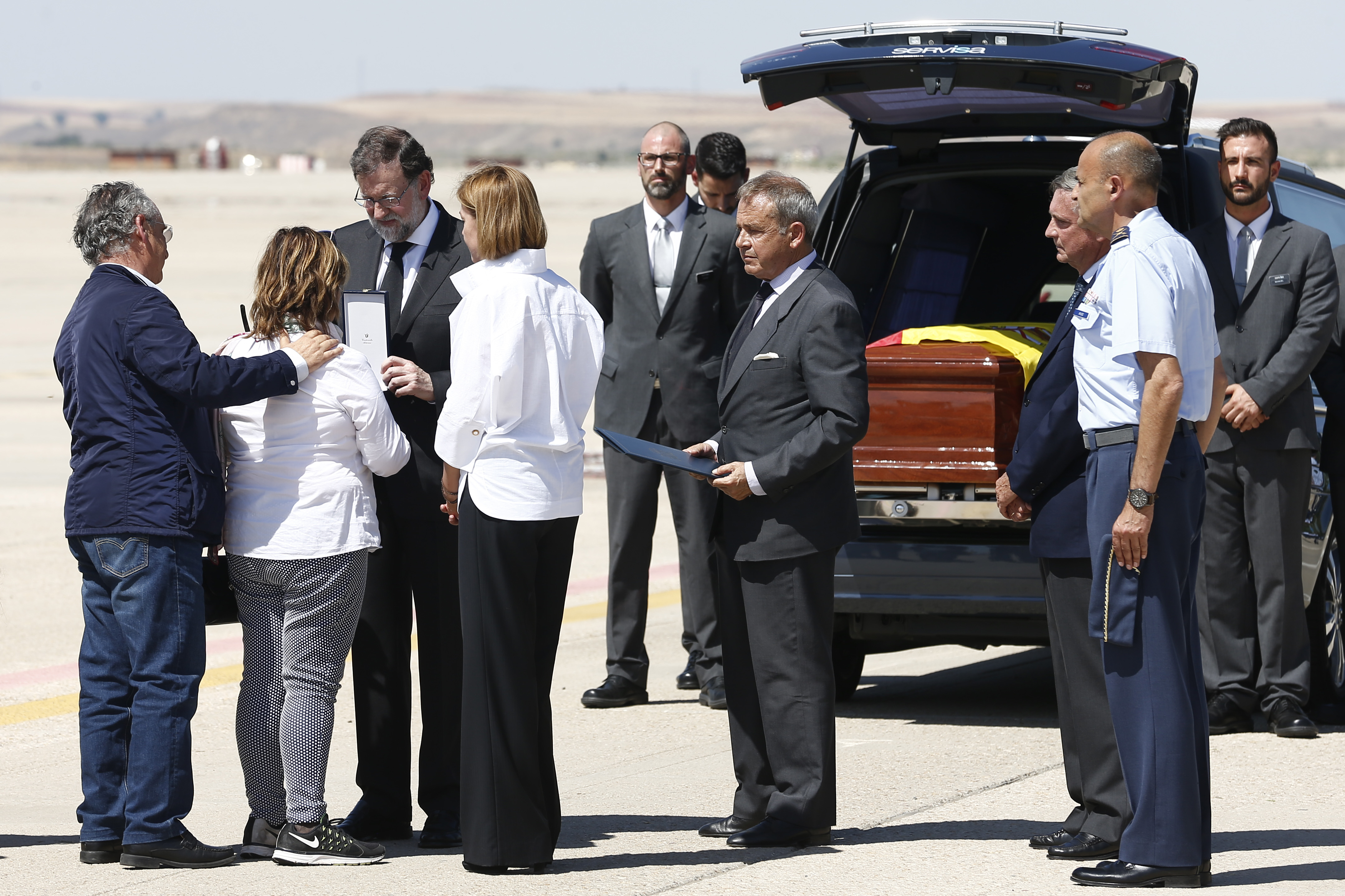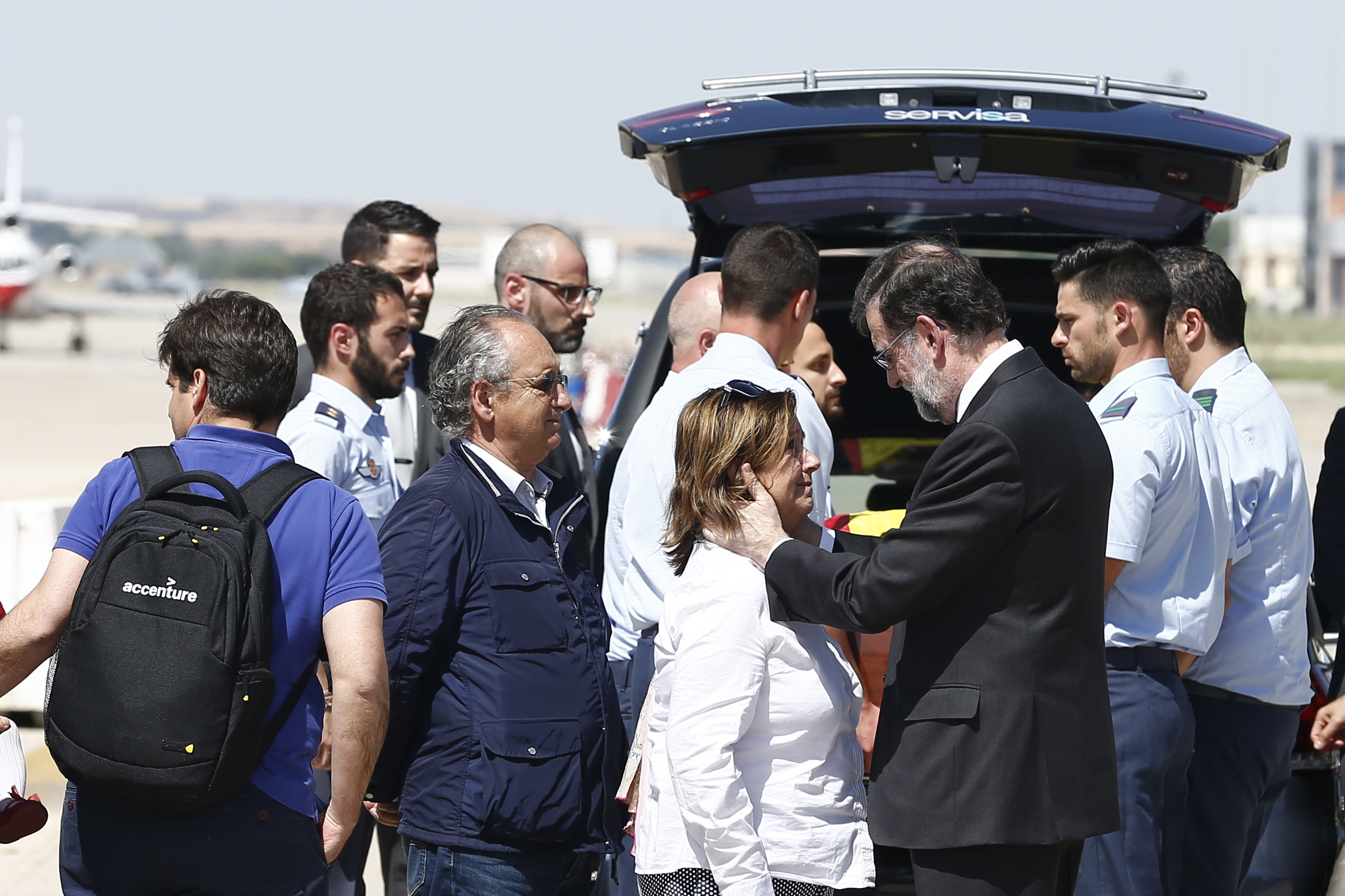Mariano Rajoy y María Dolores de Cospedal han presidido en la base aérea de Torrejón de Ardoz la recepción del cuerpo de Ignacio Echeverría.