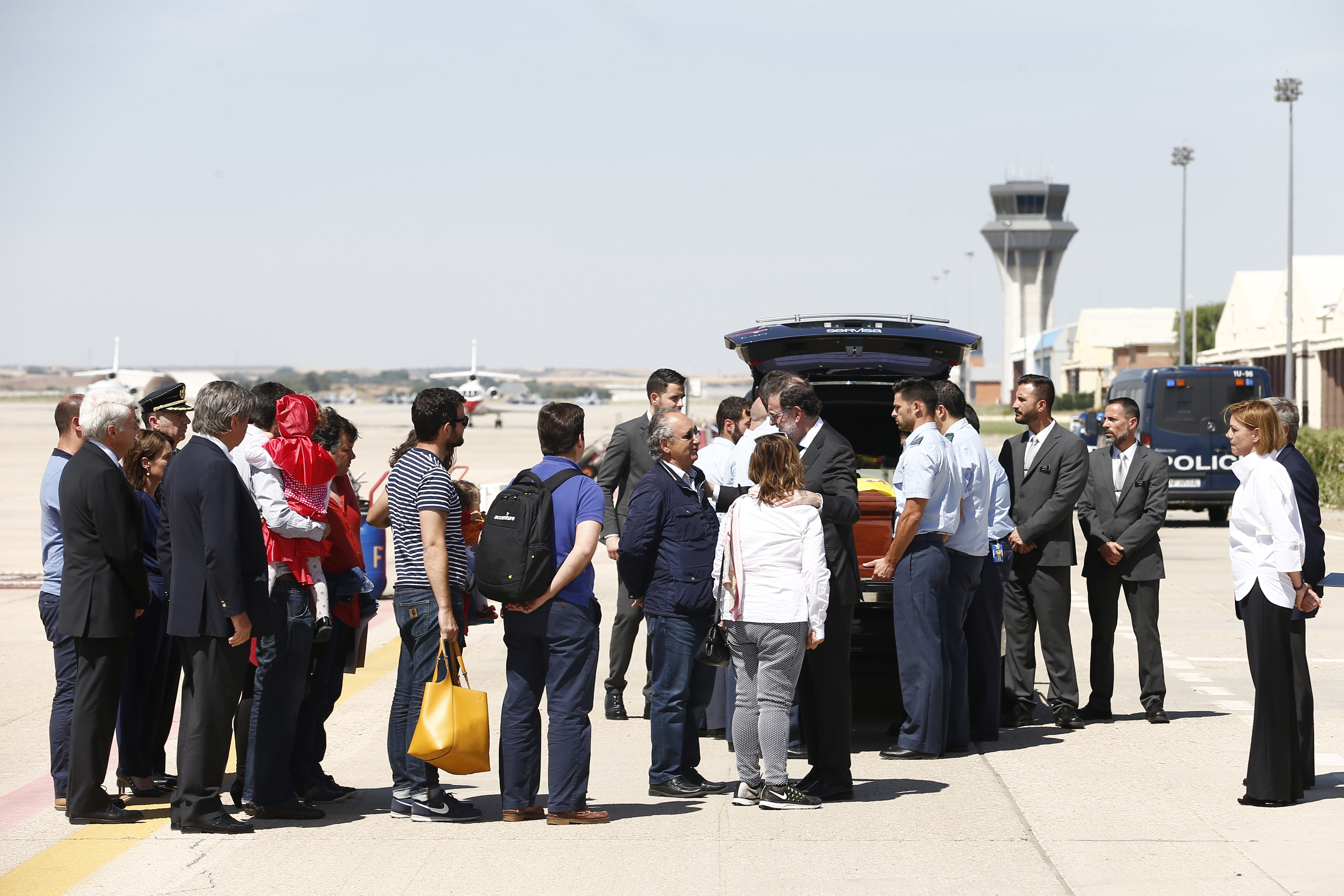 El féretro con el cuerpo del español Ignacio Echeverría ha llegado en un avión militar. El presidente del Gobierno, Mariano Rajoy, le ha recibido en la base aérea de Torrejón de Ardoz y ha entregado a la familia la Gran Cruz del Mérito Civil a título póstumo