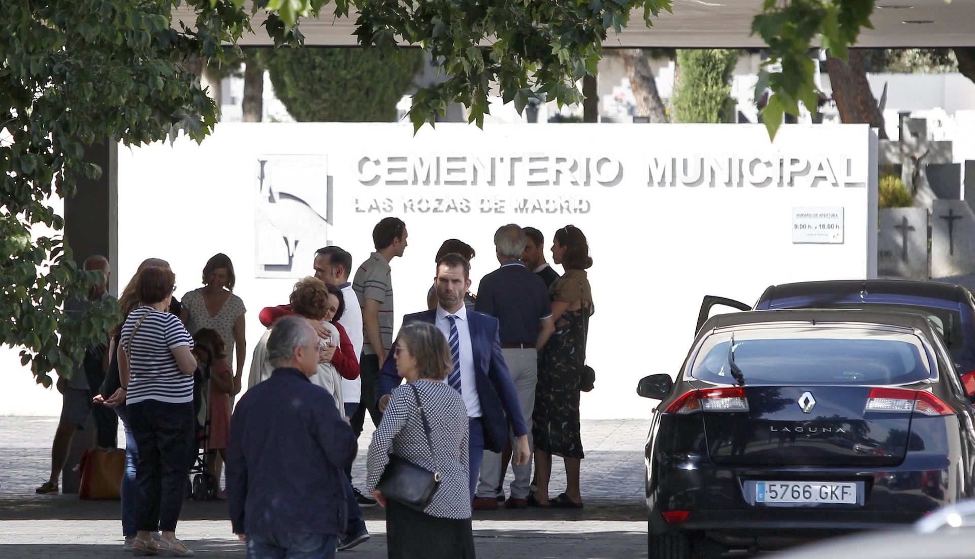 Familiares del español Ignacio Echeverría llegan al tanatorio de Las Rozas donde se encuentra su cuerpo, que recibirá sepultura este domingo en el cementerio municipal.