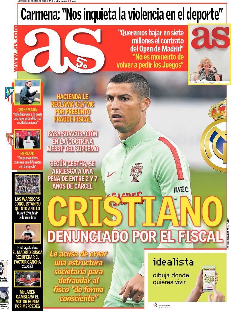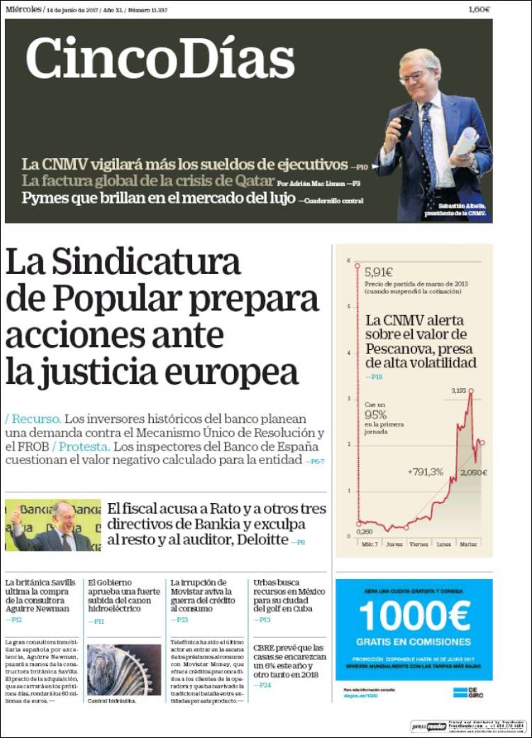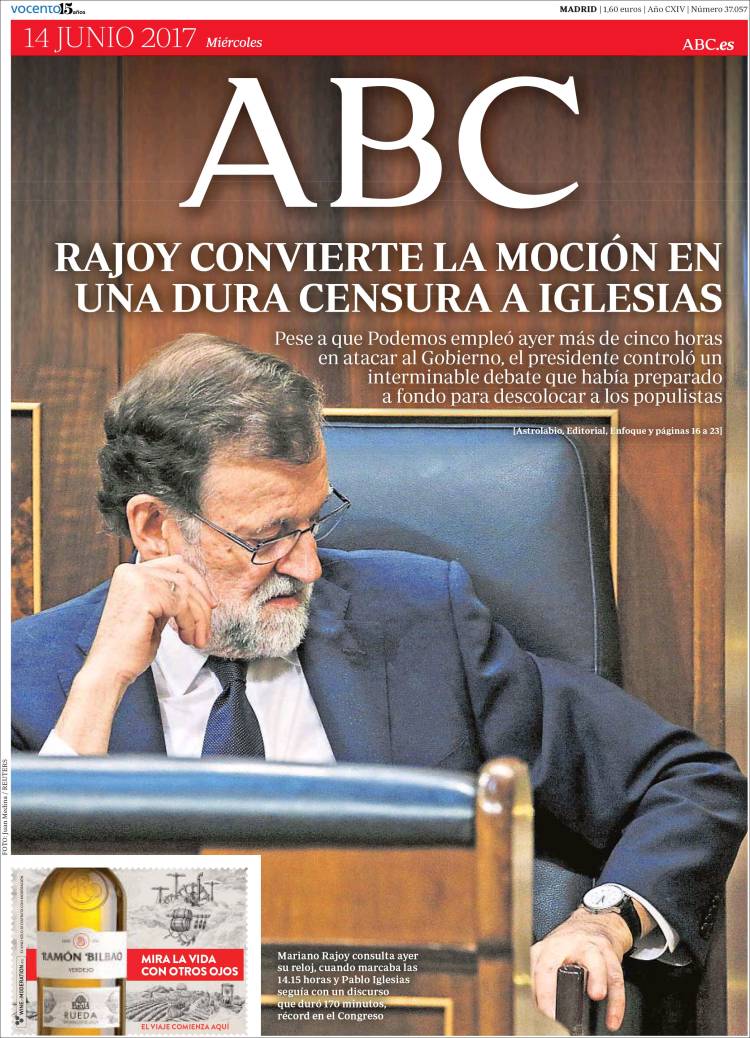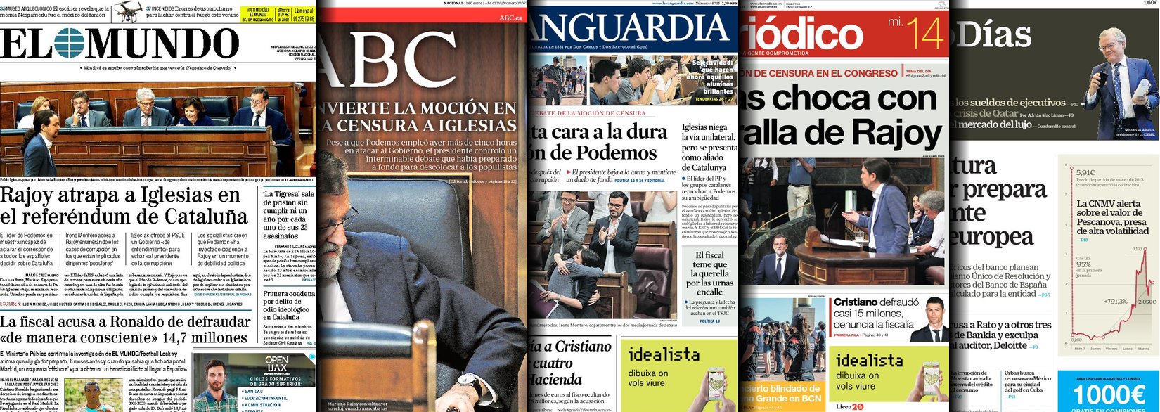 Portadas de los diarios ABC, As, Cinco Días, El Periódico y La Vanguardia.