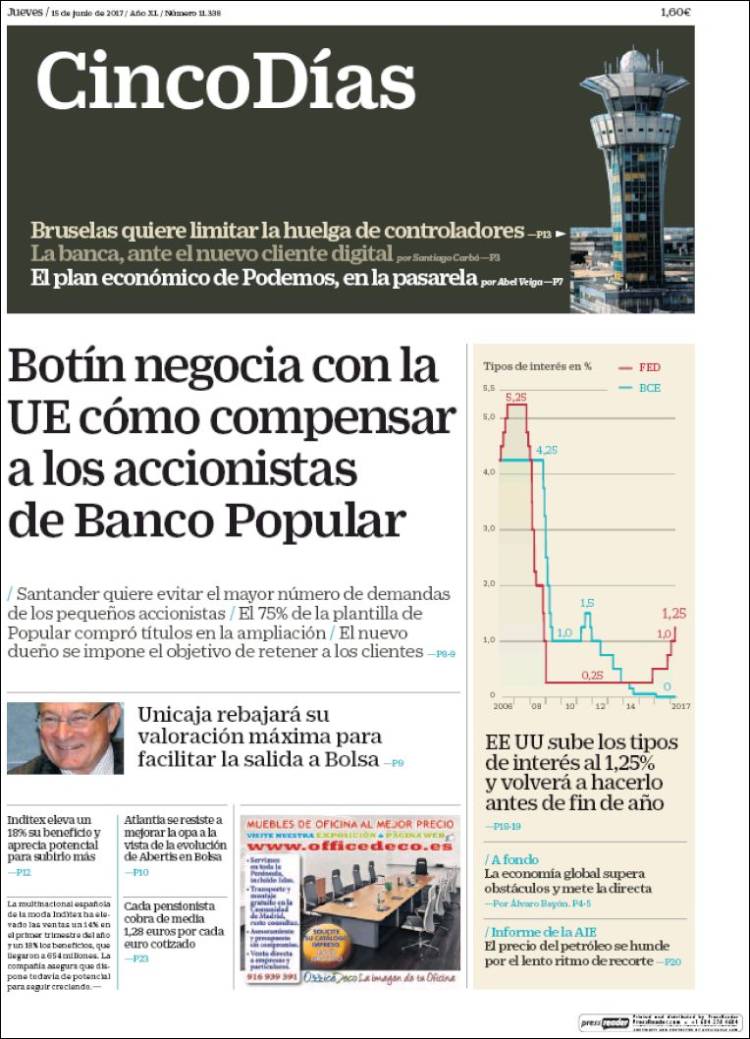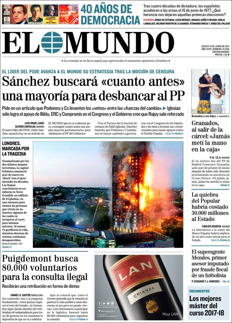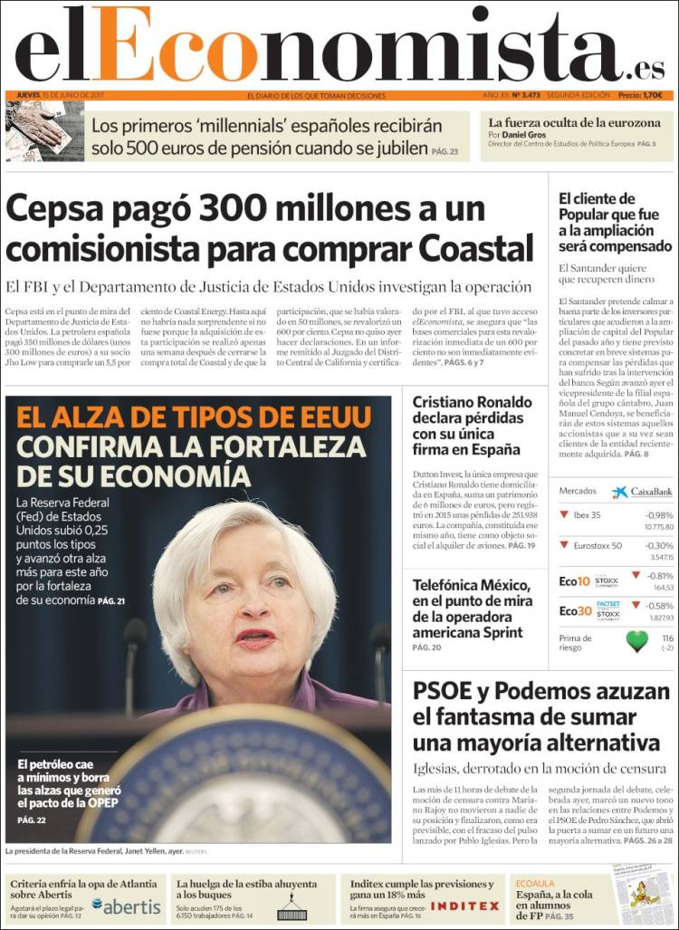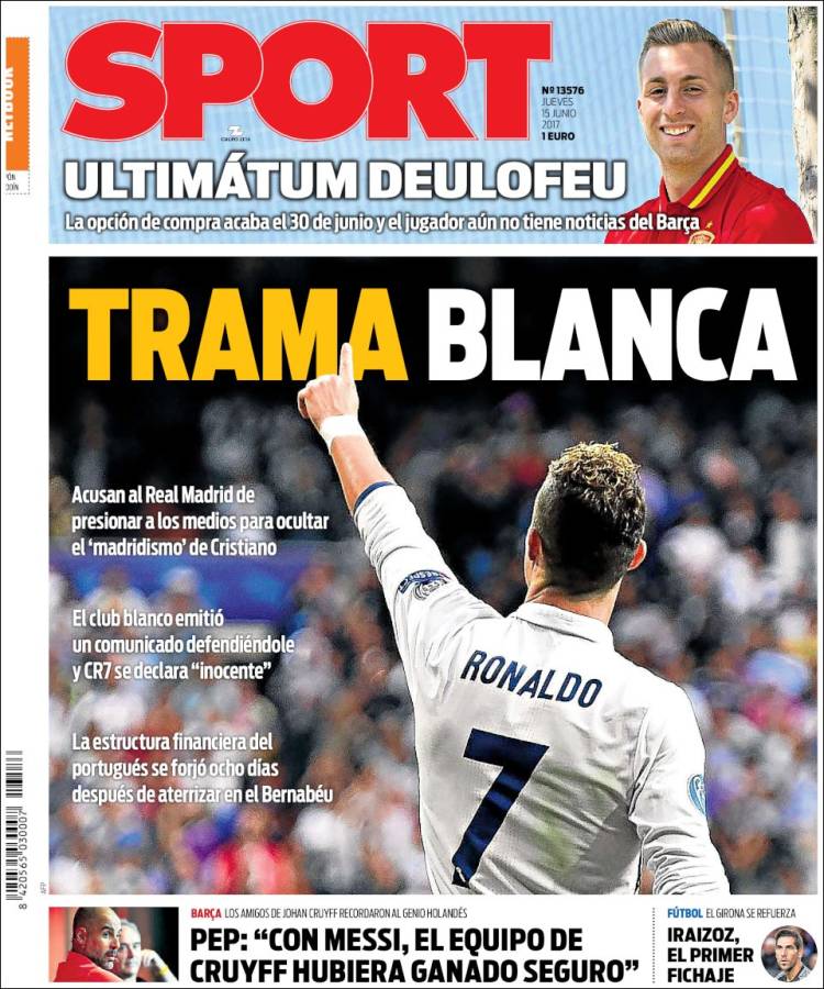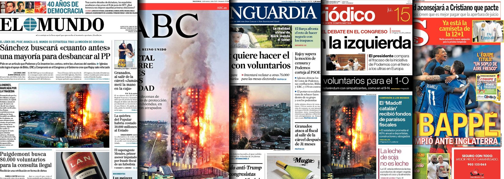 Portadas de los diarios El Mundo, El País, ABC, La Razón, La Vanguardia, El Periódico, Cinco Días, El Economista, Expansión, As, Mundo Deportivo y Sport.