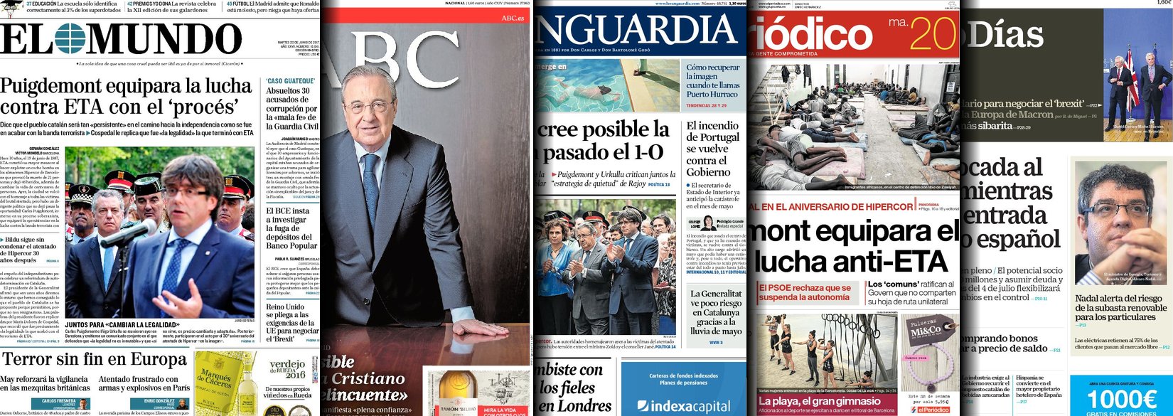 Portadas de los diarios ABC, As, Cinco Días, El Periódico y La Vanguardia.