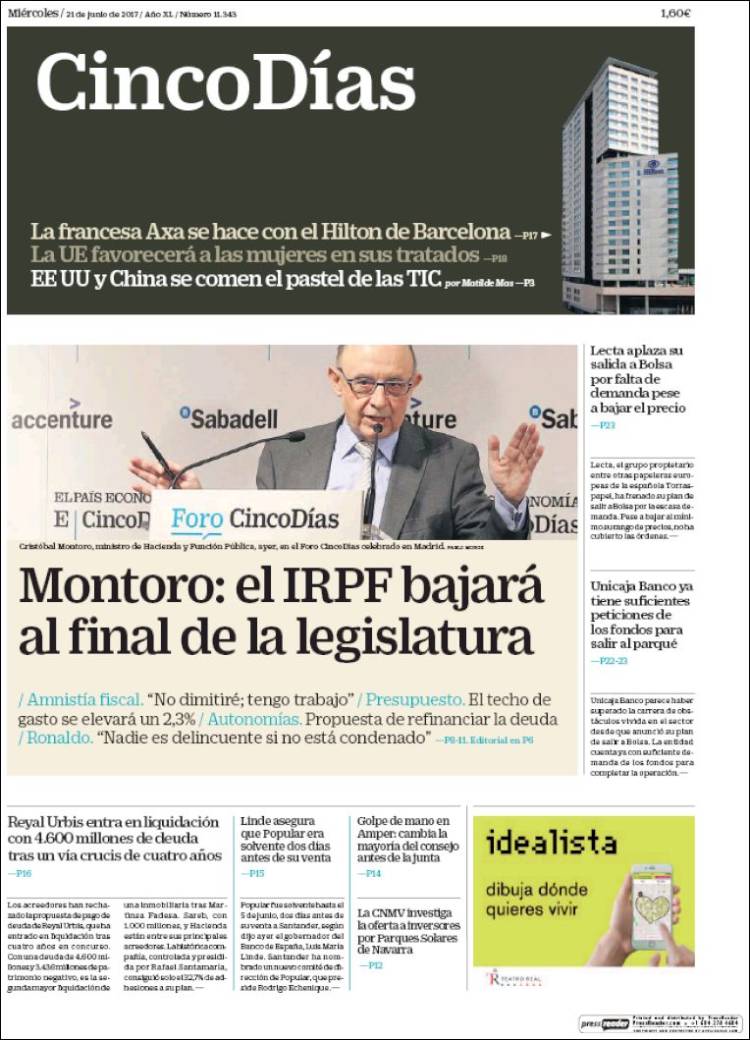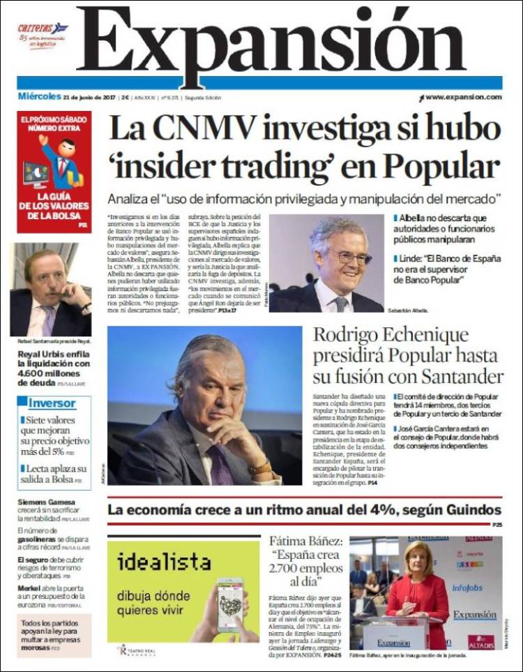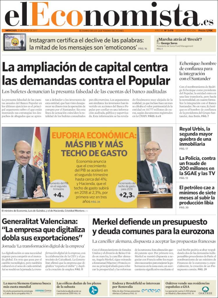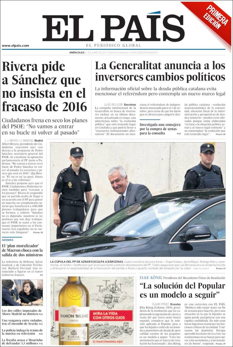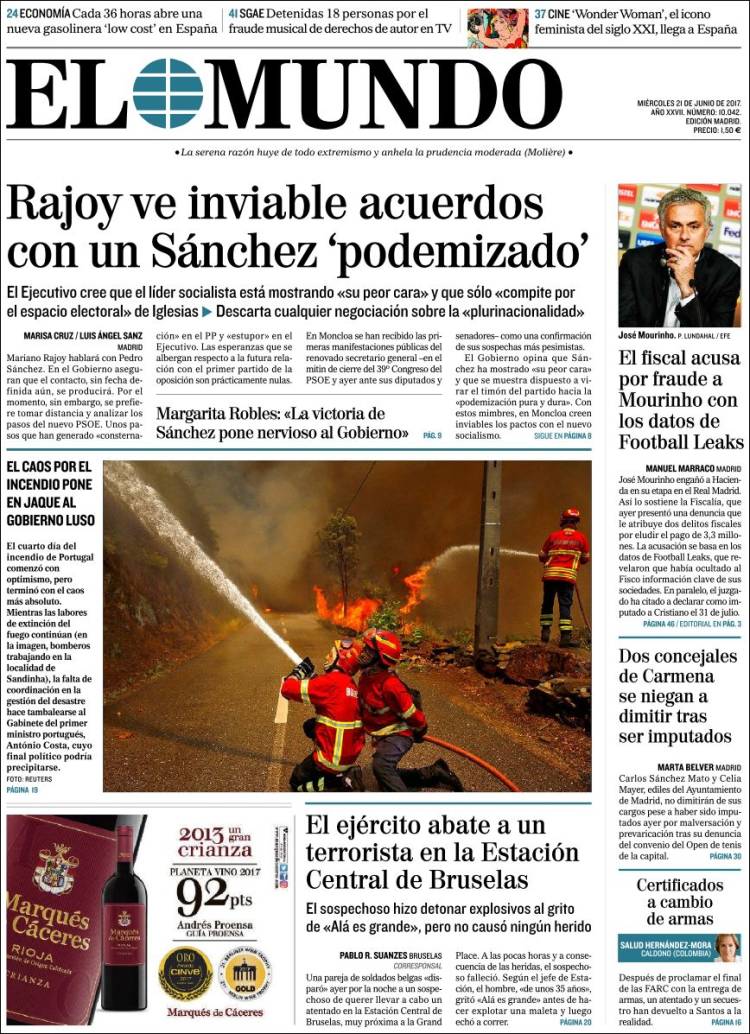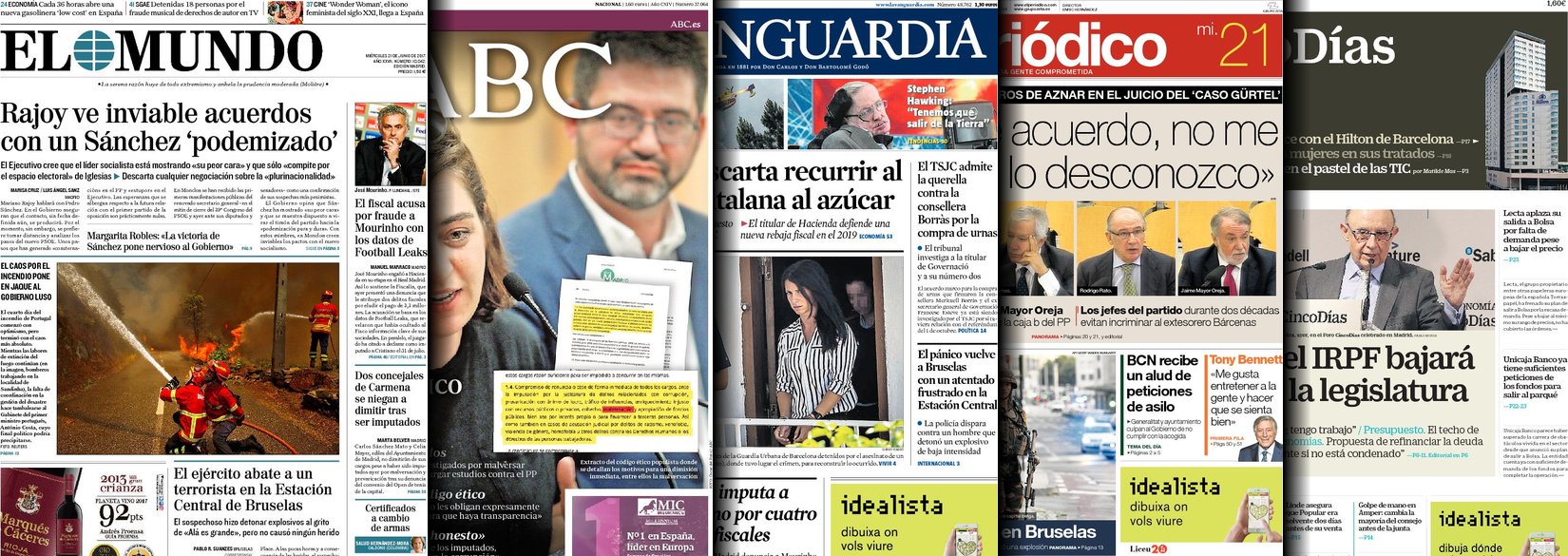 Portadas de los diarios El Mundo, El País, ABC, La Razón, La Vanguardia, El Periódico, Cinco Días, El Economista, Expansión, Marca, As, Mundo Deportivo y Sport.