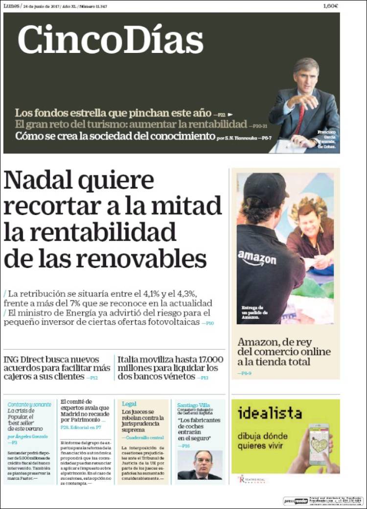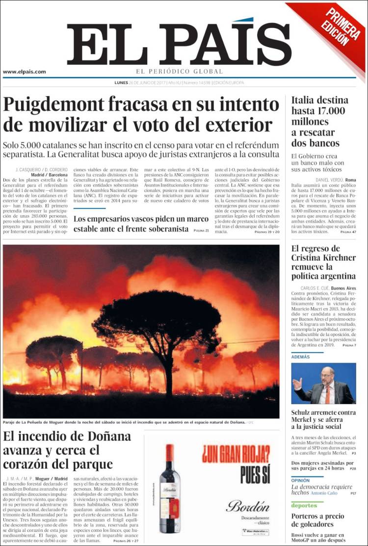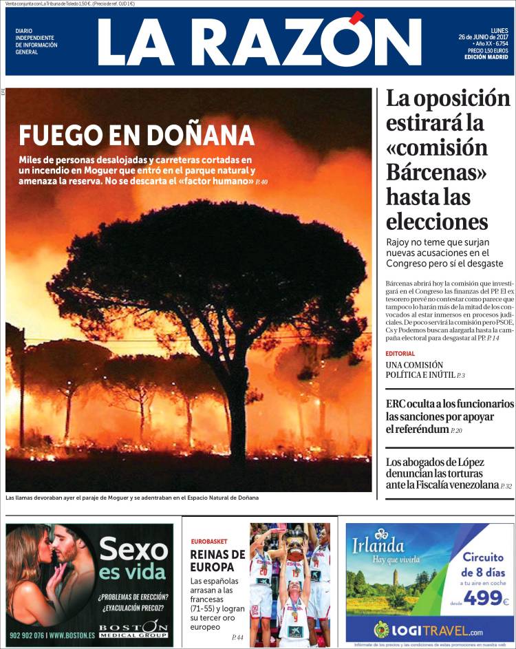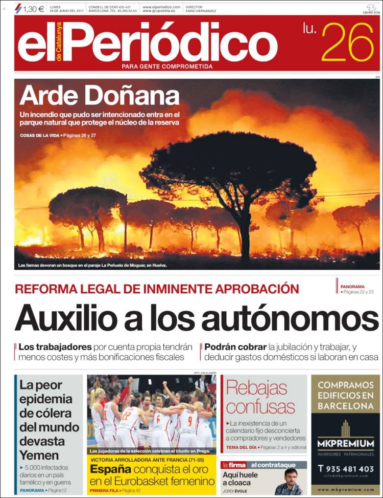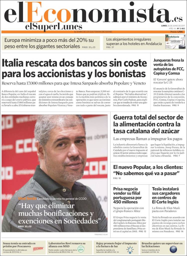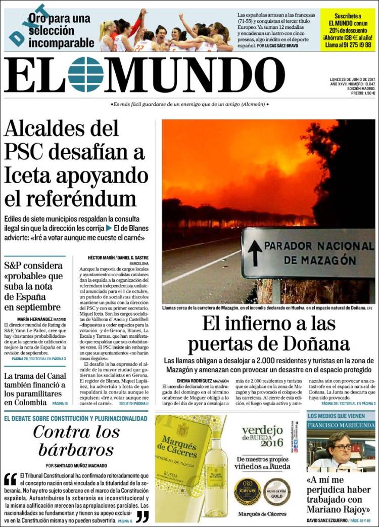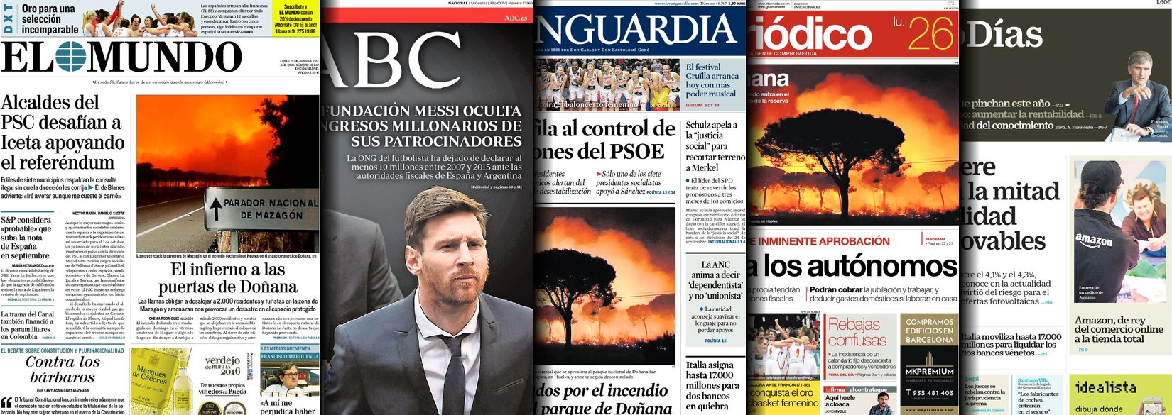 Portadas de los diarios El Mundo, El País, ABC, La Razón, La Vanguardia, El Periódico, Cinco Días, El Economista, Marca, As, Mundo Deportivo y Sport.