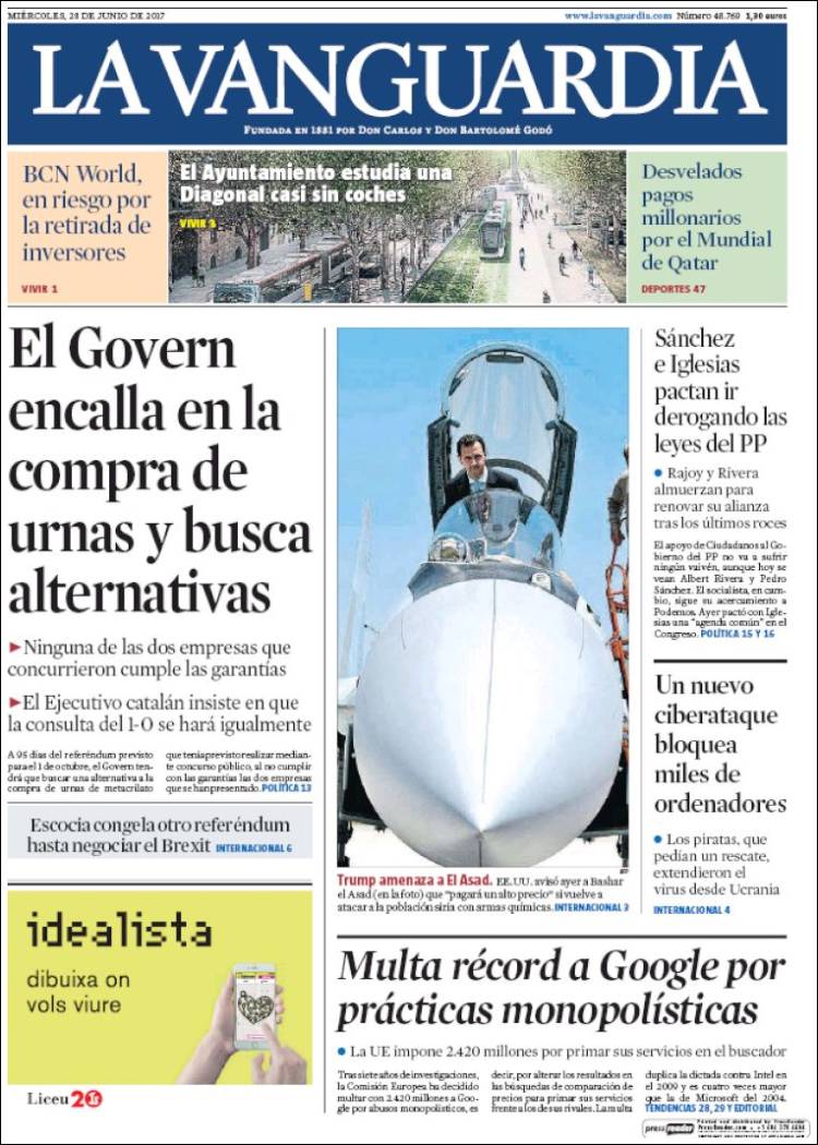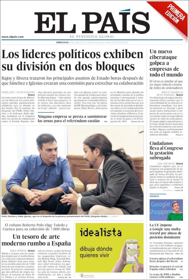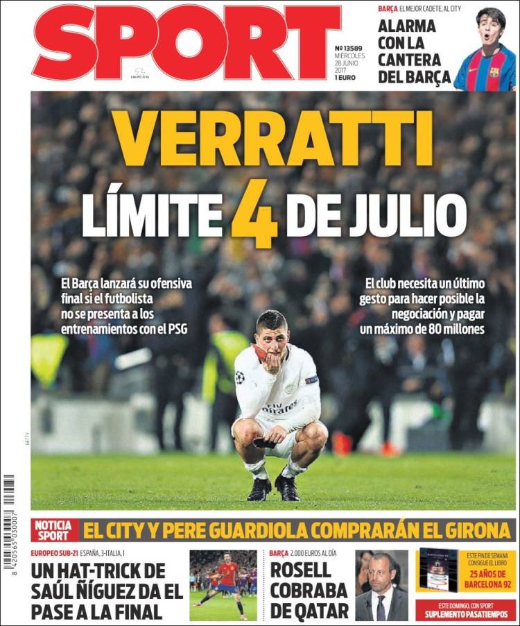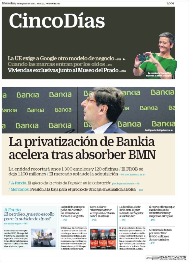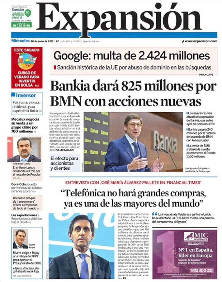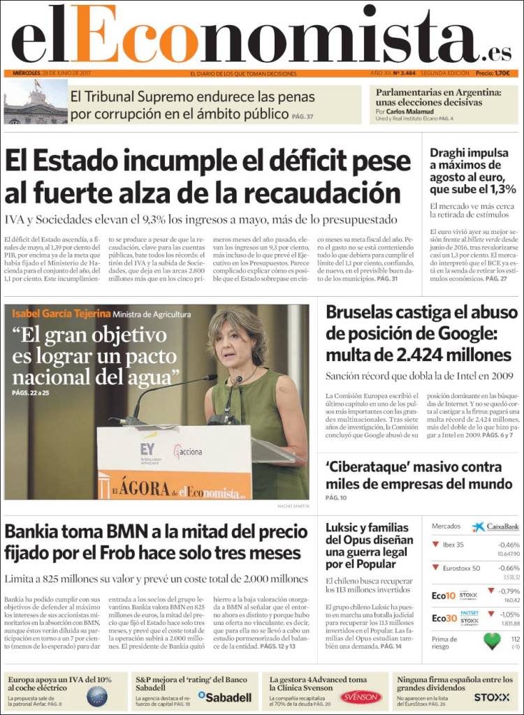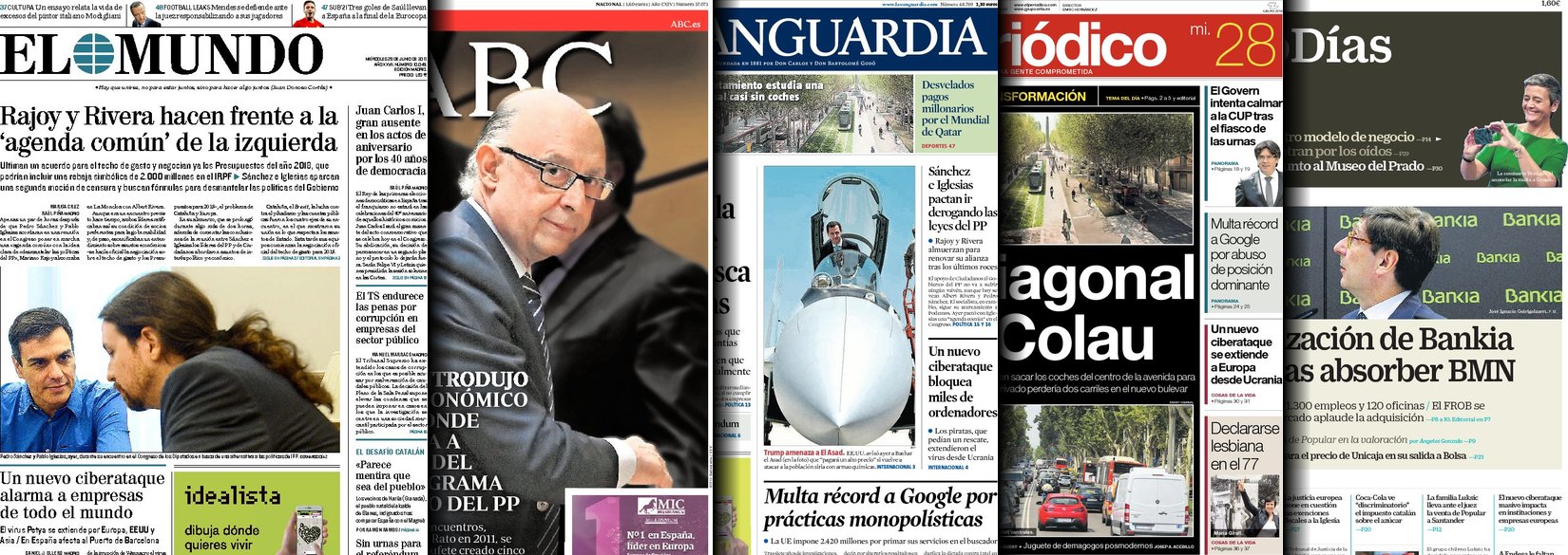 Portadas de los diarios El Mundo, El País, ABC, La Razón, La Vanguardia, El Periódico, Cinco Días, El Economista, Expansión, Marca, As, Mundo Deportivo y Sport.