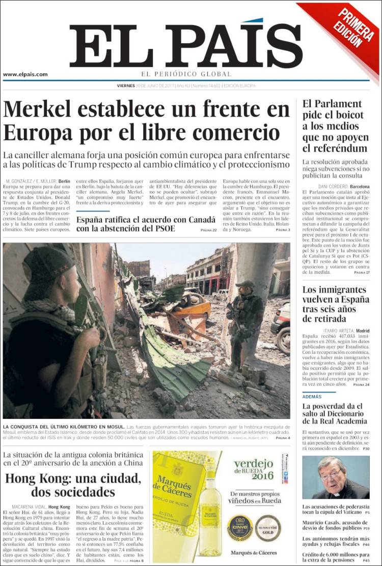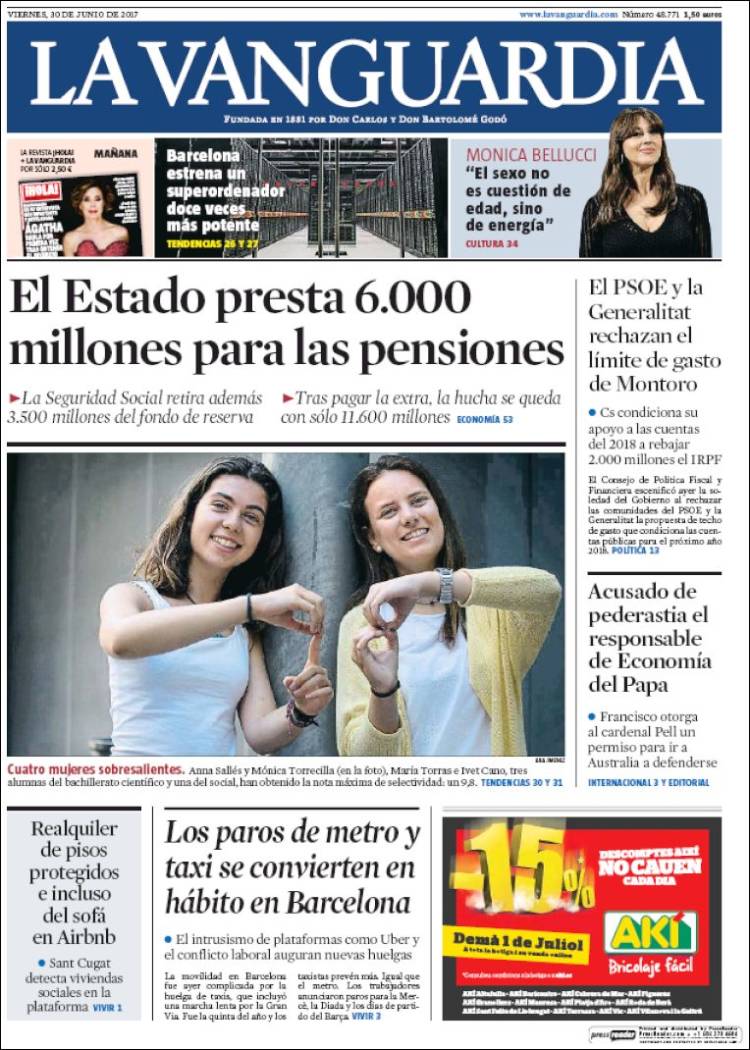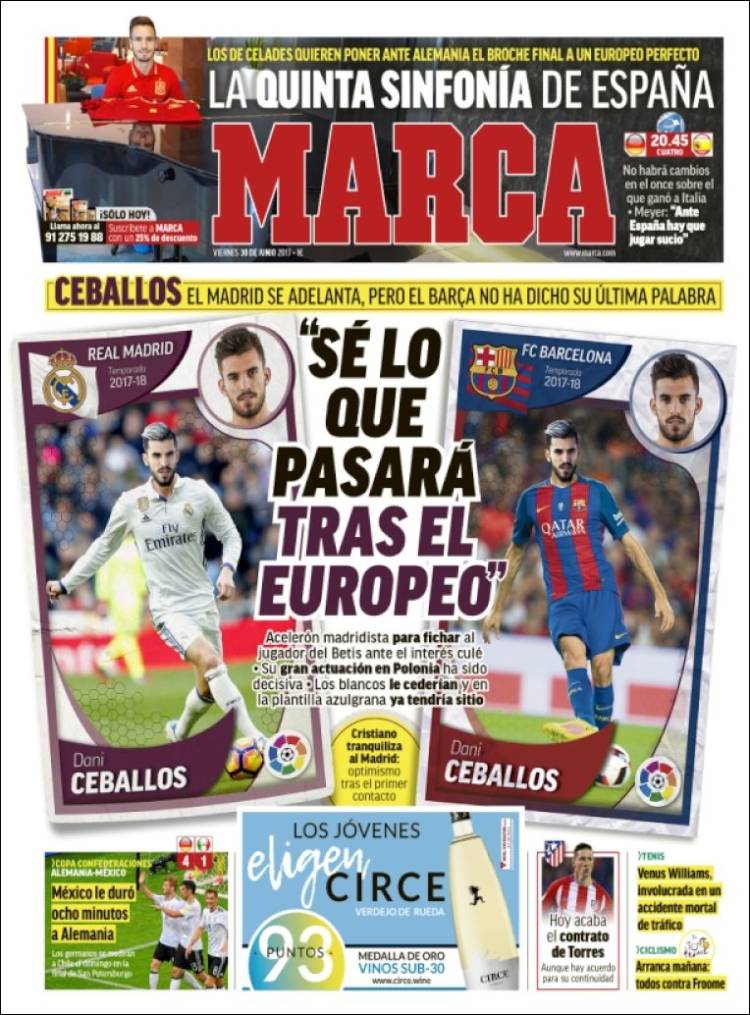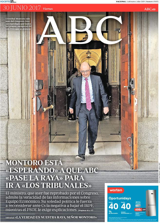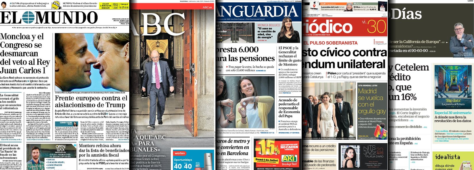 Portadas de los diarios ABC, As, Cinco Días, El Periódico y La Vanguardia.