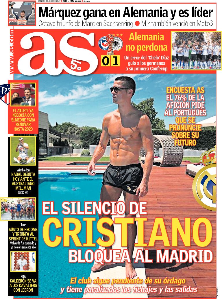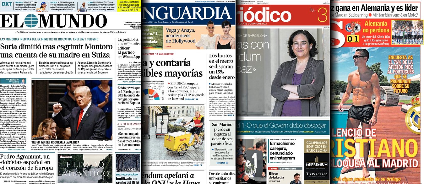 Portadas de los diarios As, El Periódico y La Vanguardia.
