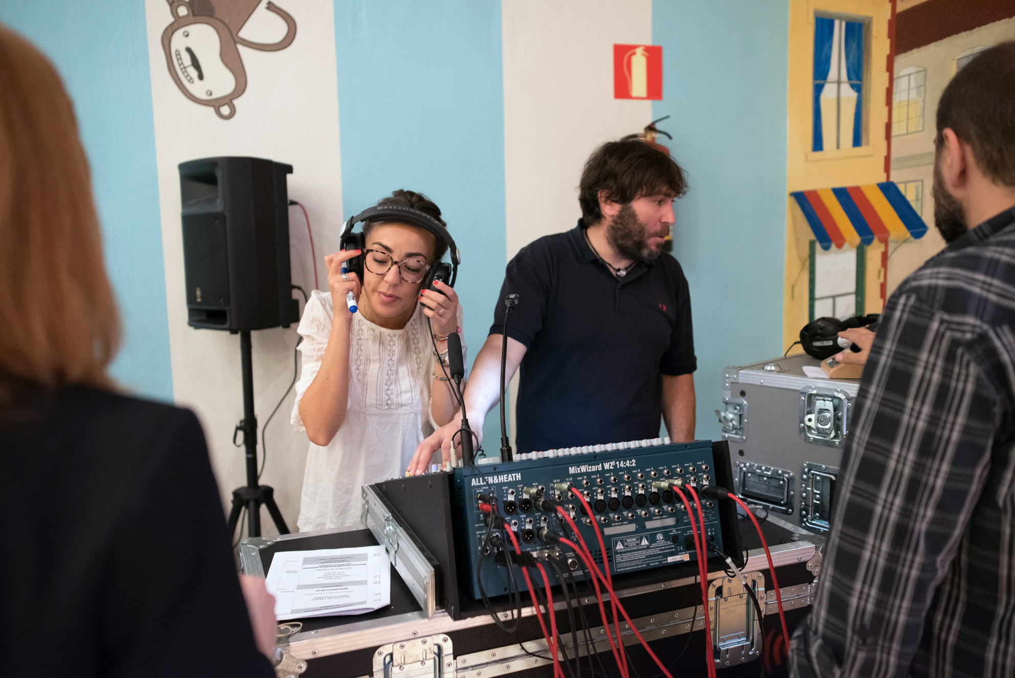 María Vélez abre las cortinas del auditorio del hospital Niño Jesús de Madrid, minutos antes del comienzo del programa especial de Es la Mañana de Federico.