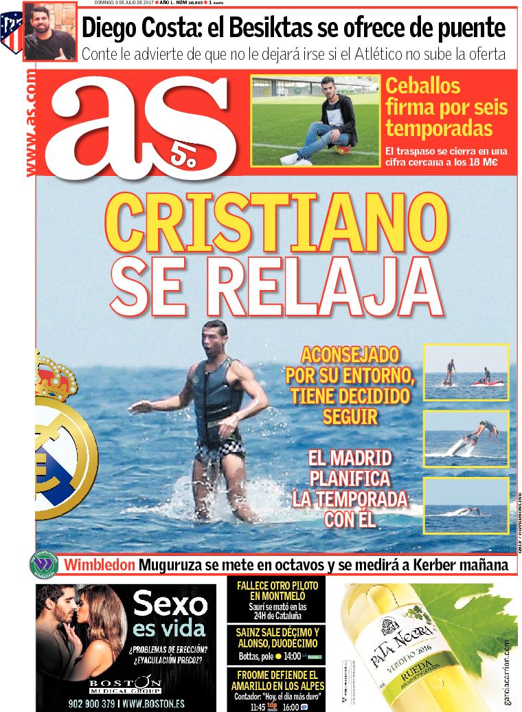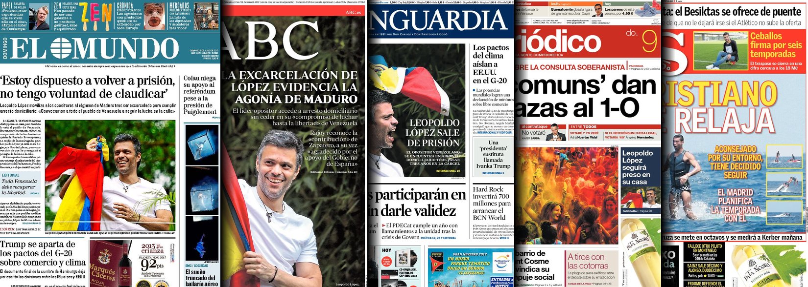 Portadas de los diarios ABC, As, El Periódico y La Vanguardia.