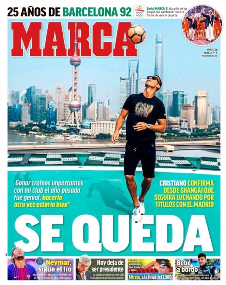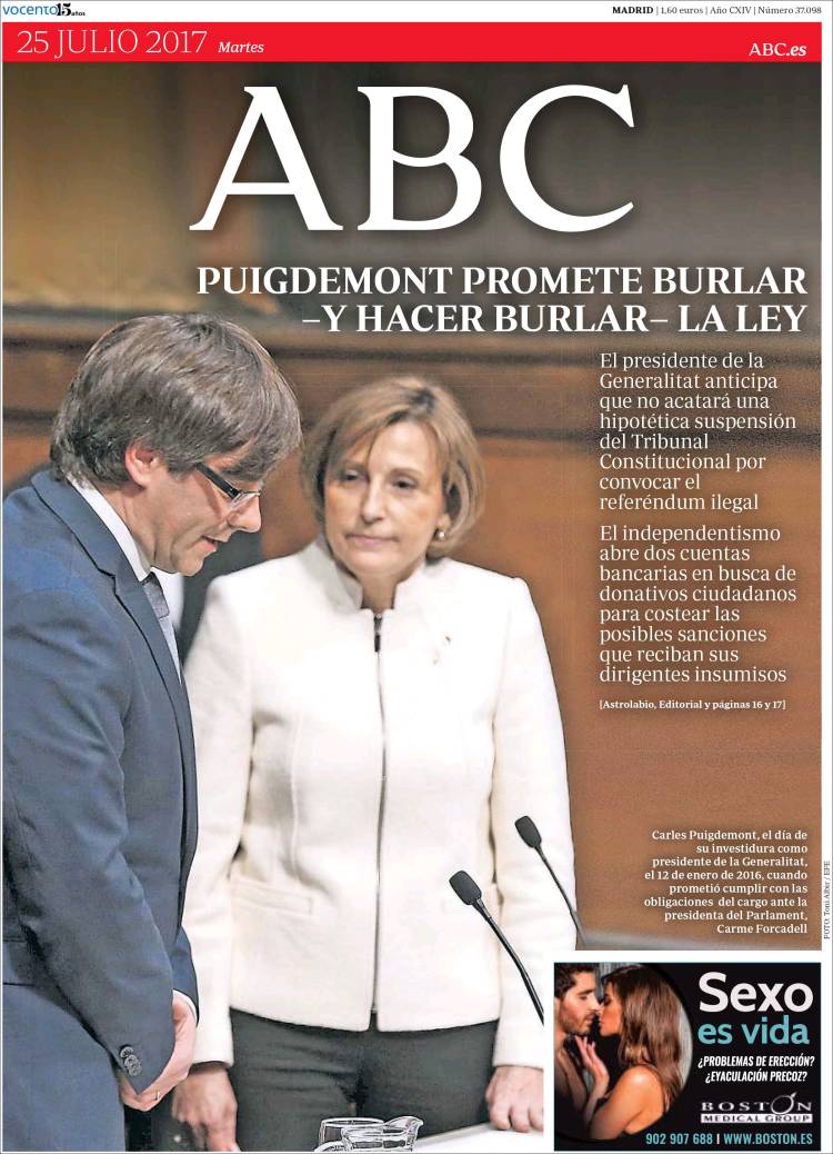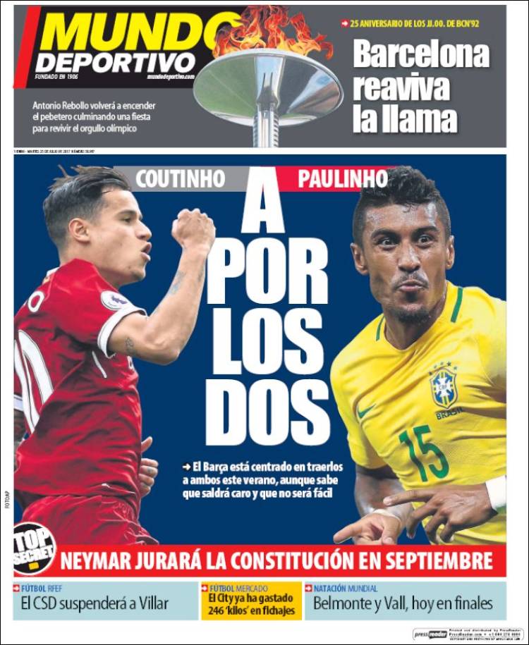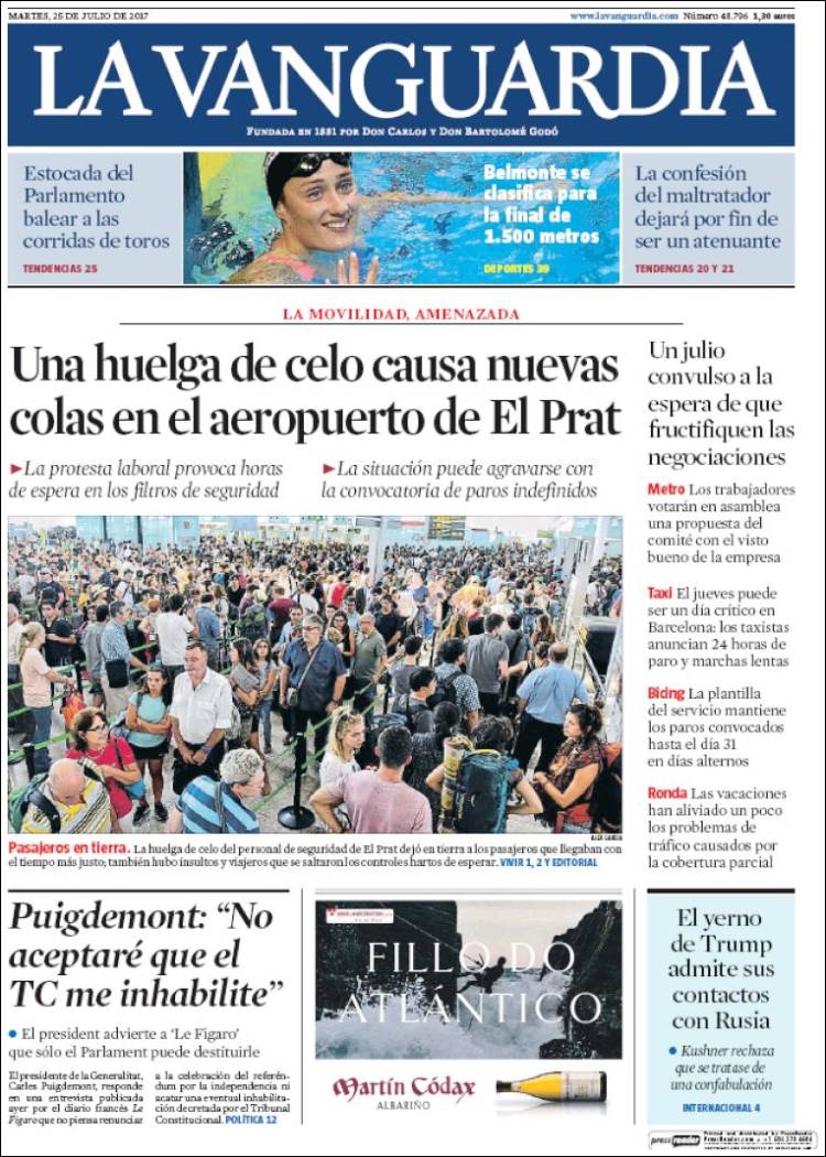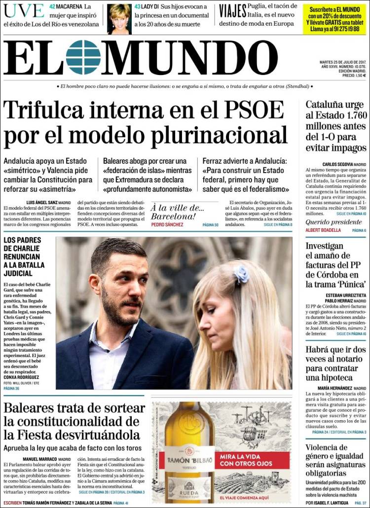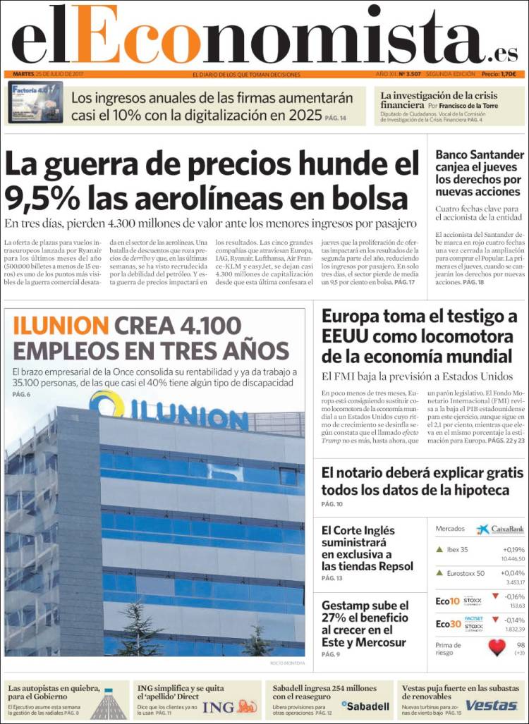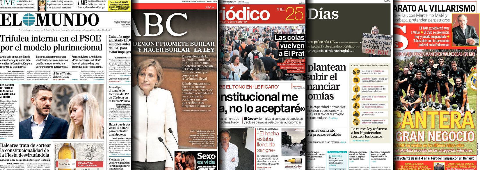 Portadas de los diarios El Mundo, El País, ABC, La Razón, La Vanguardia, El Periódico, Cinco Días, El Economista, Marca, As, Mundo Deportivo y Sport.