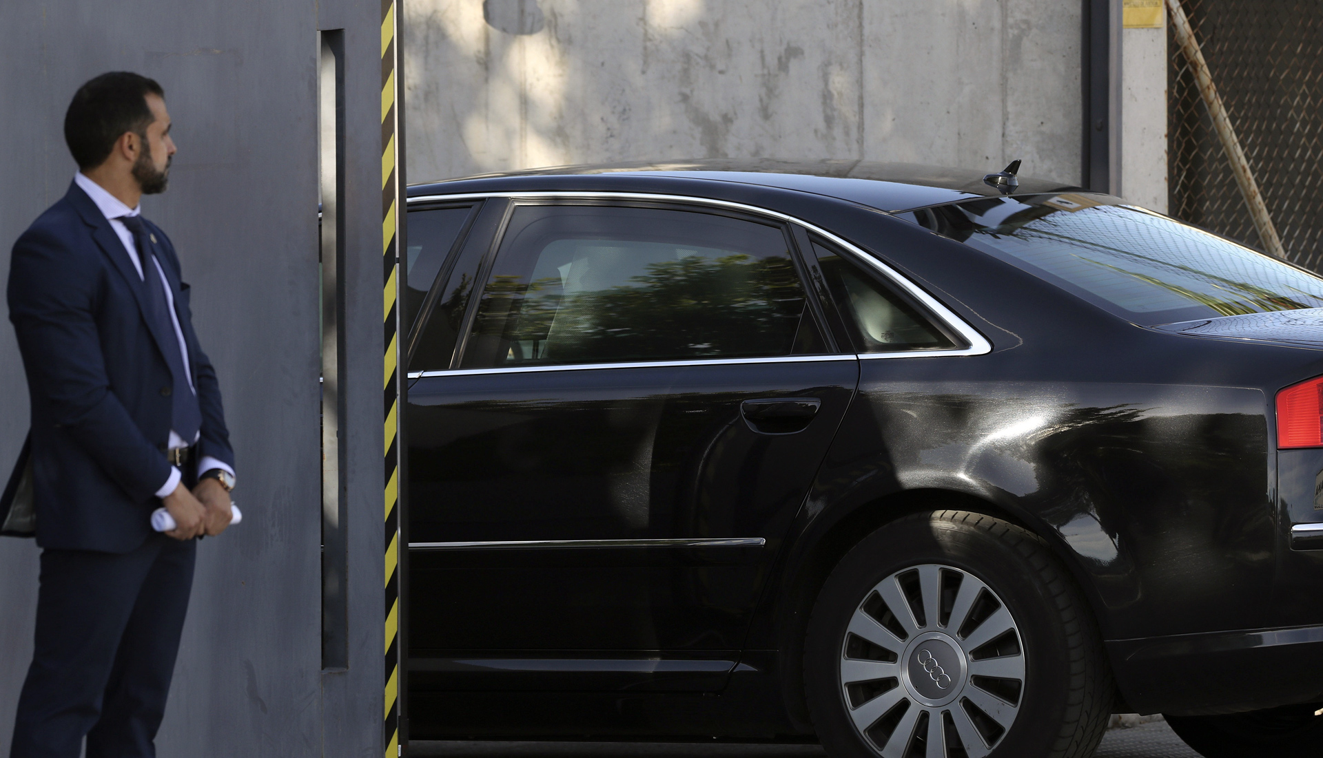 El presidente del Gobierno, Mariano Rajoy, a su llegada en coche a la sede de la Audiencia Nacional en San Fernando de Henares (Madrid) donde prestará declaración como testigo en el juicio por la primera época de la trama de corrupción Gürtel.como testigo en el macrojuicio de corrupción de la trama Gürtel.