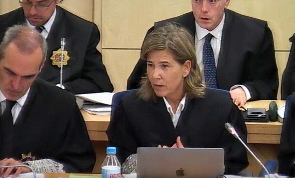 La fiscal Concepción Sabadell durante sus preguntas al presidente del Gobierno, Mariano Rajoy, quien declara hoy como testigo en el macrojuicio de corrupción de la trama Gürtel.