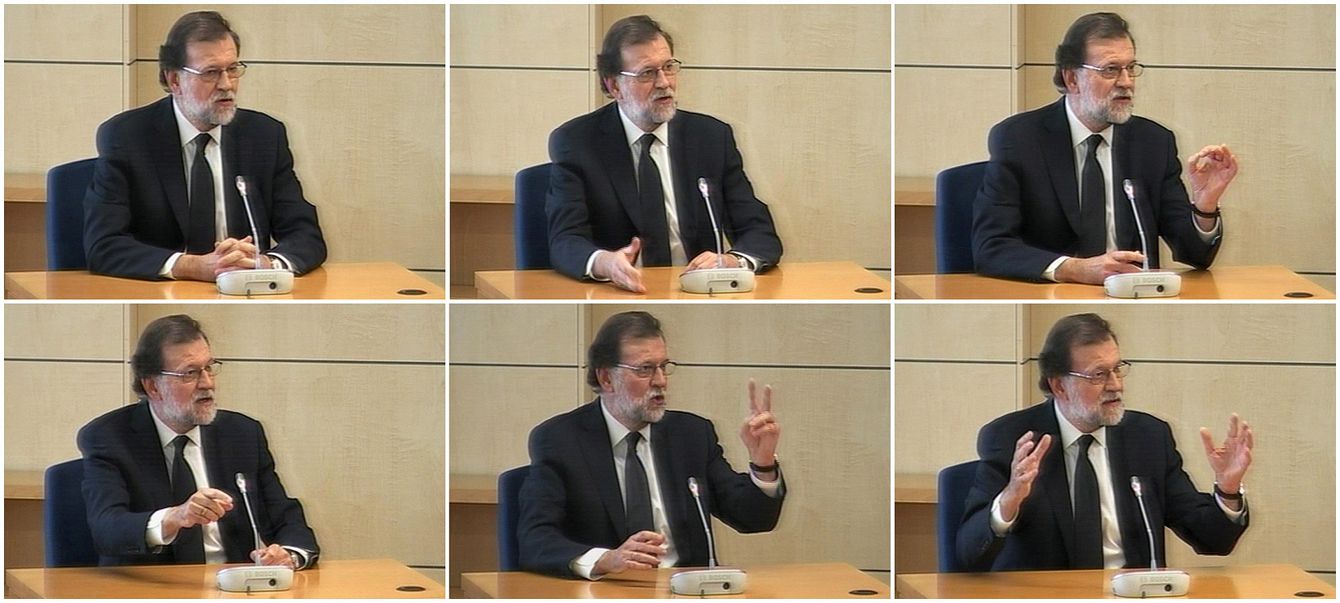 Distintos momentos de la comparecencia de Mariano Rajoy en la Audiencia Nacional