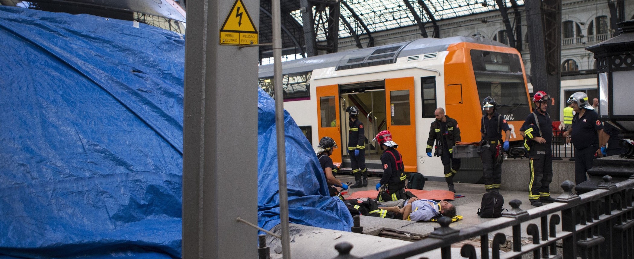 Al menos 40 de pasajeros han resultado heridos al chocar un tren de la línea R2 sur Rodalies contra el tope final de la línea en la estación de Francia de Barcelona.