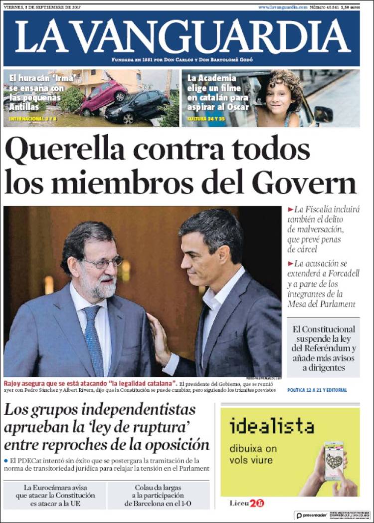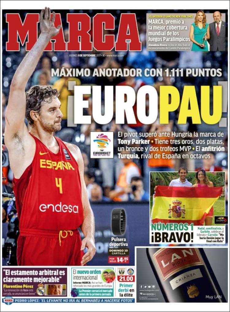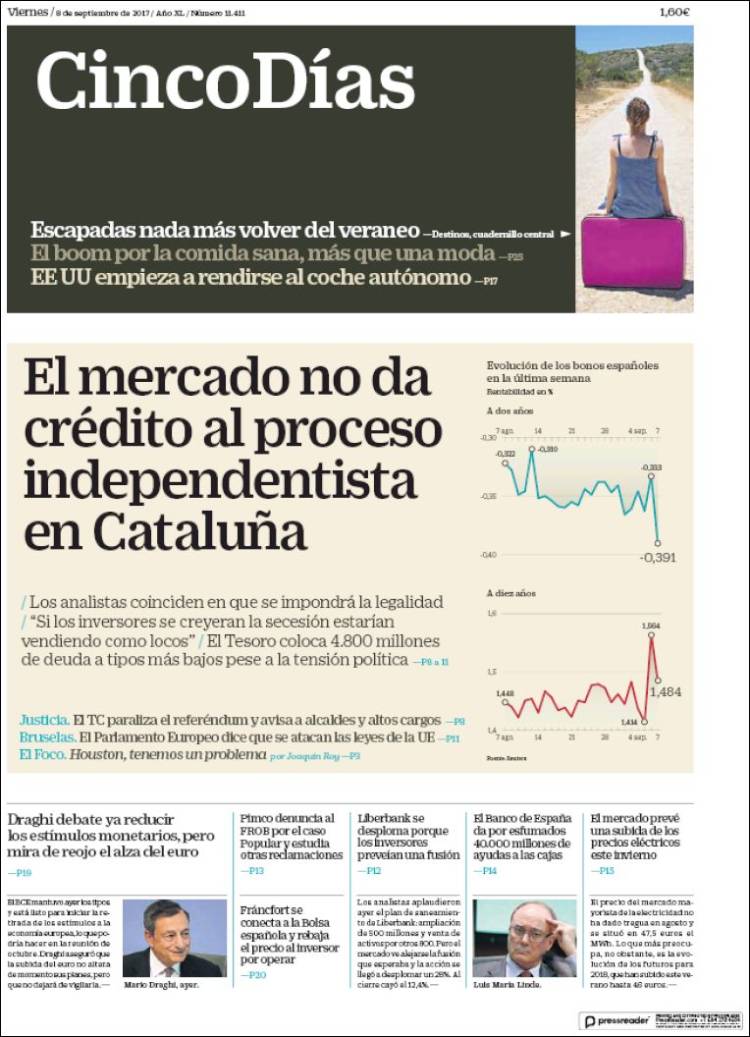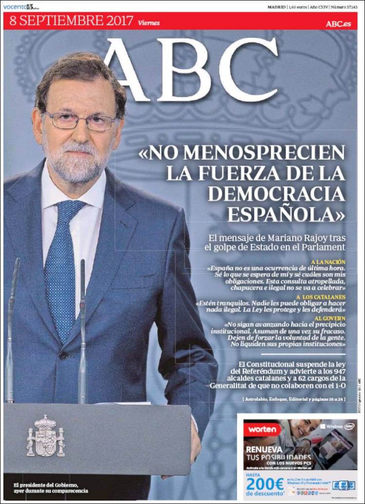 Portadas de los diarios El Mundo, El País, ABC, La Razón, La Vanguardia, El Periódico, Cinco Días, El Economista, Marca, As, Mundo Deportivo y Sport.