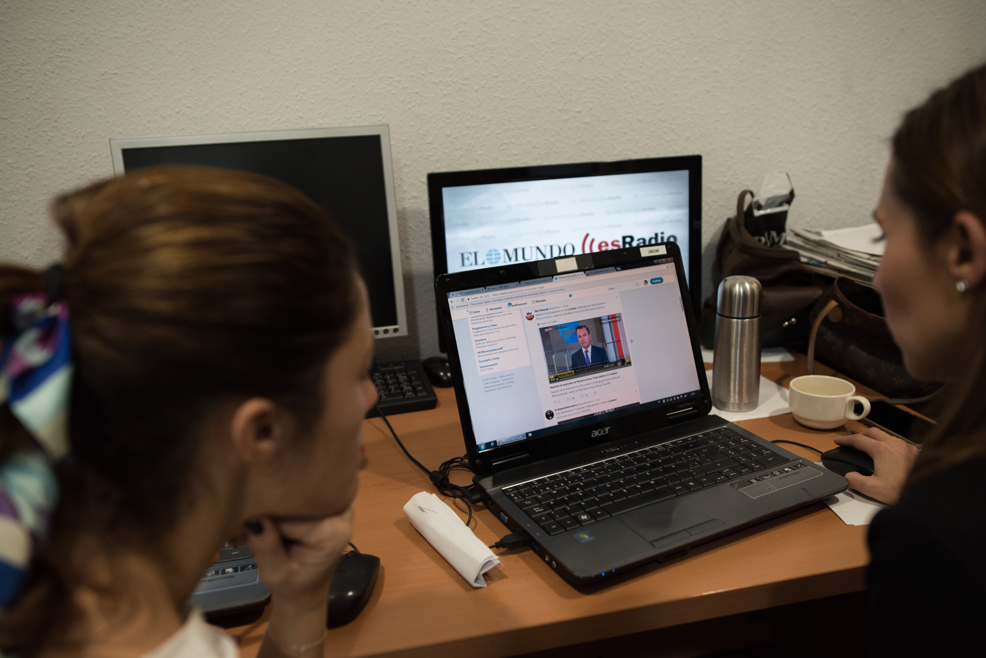 Sara Sanz y Silvia Riveiro buscan información sobre el "incidente terrorista" en el metro de Londres, que se producía durante las primeras horas del programa.