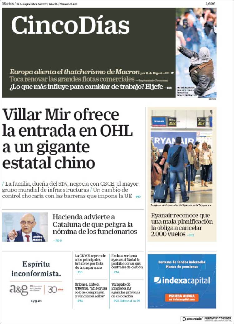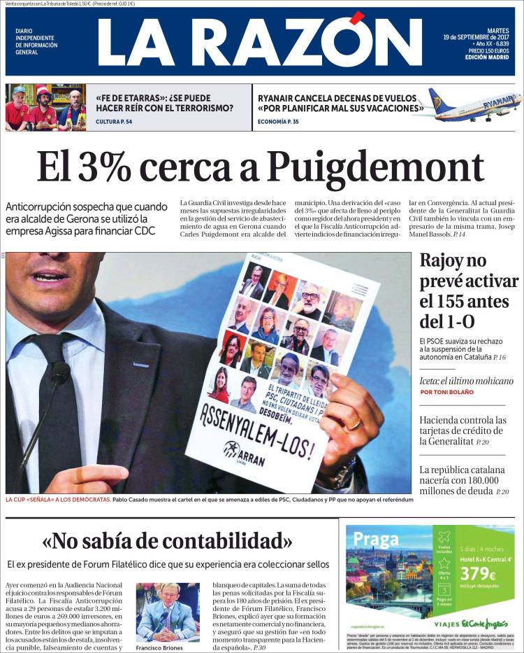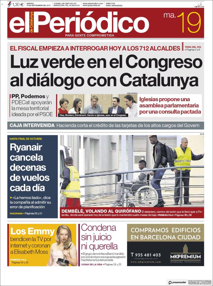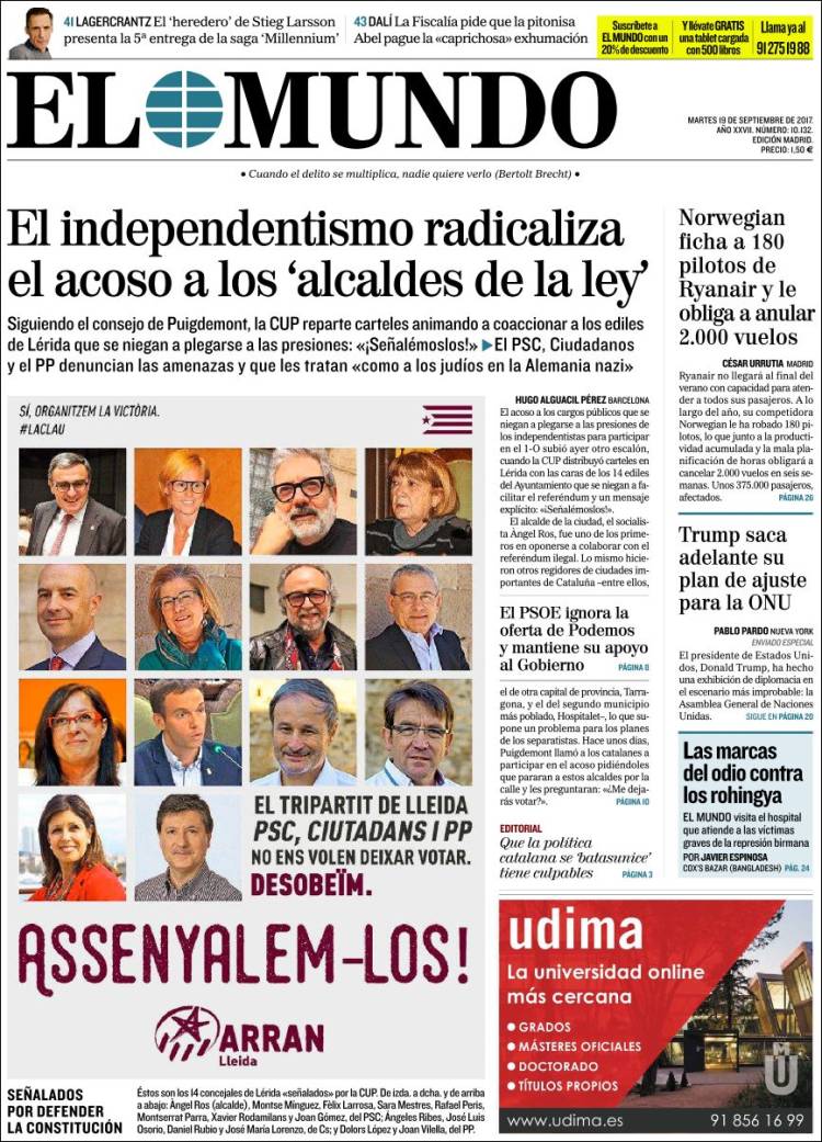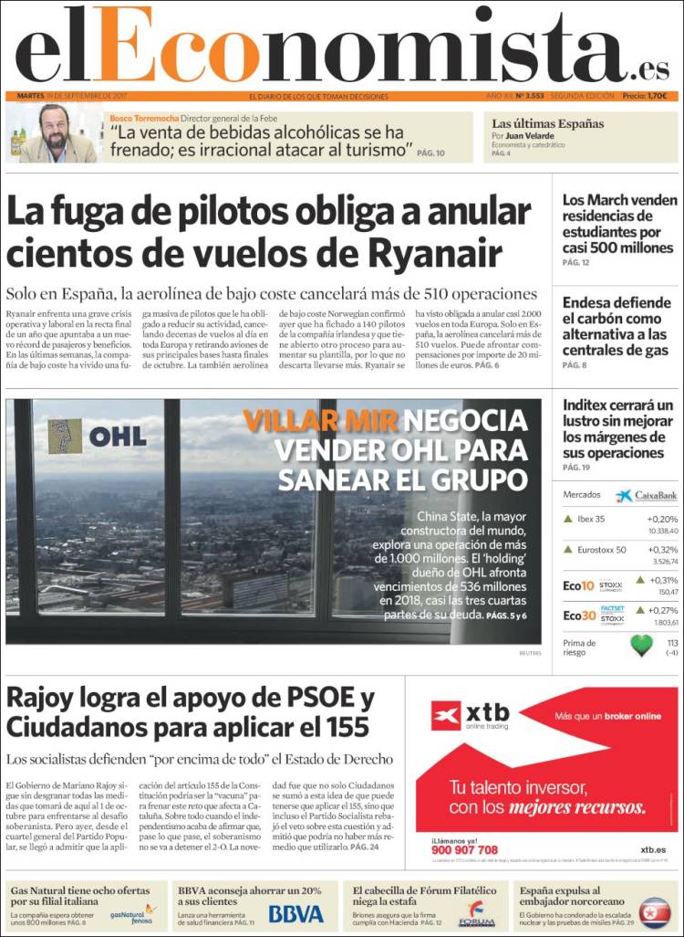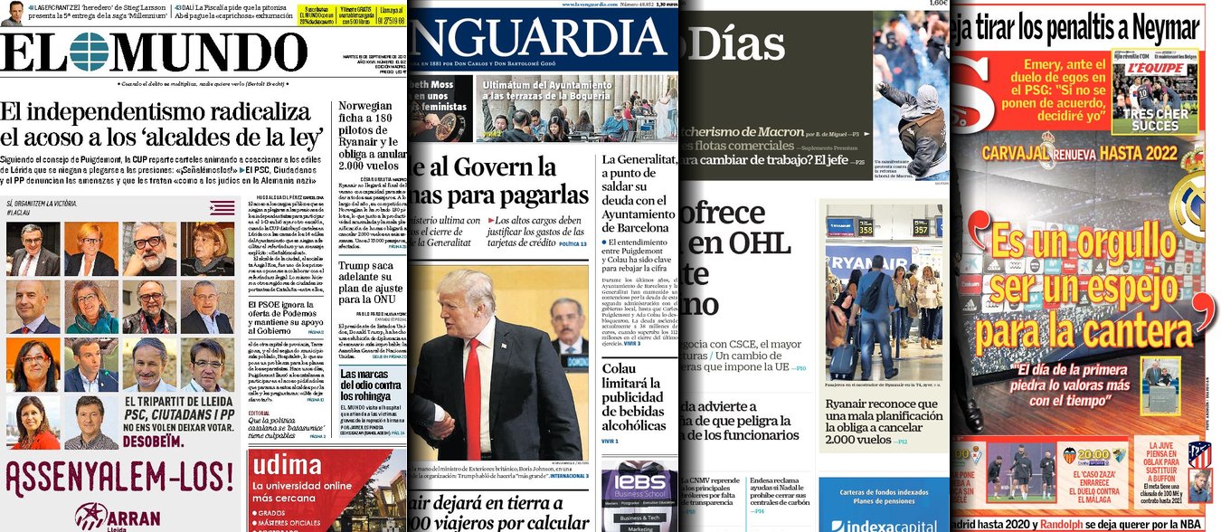 Portadas de los diarios El Mundo, El País, ABC, La Razón, La Vanguardia, El Periódico, Cinco Días, El Economista, Marca, As y Mundo Deportivo.