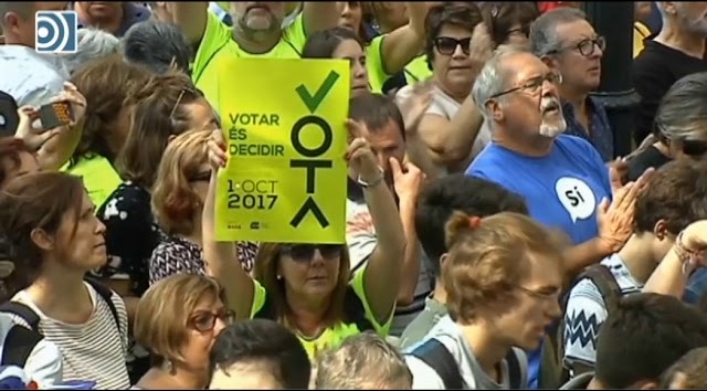 La movilización fue convocada ayer por la noche por la Asamblea Nacional Catalana (ANC) y Ómnium Cultural, como continuación de la concentración que congregó anoche a unas 40.000 personas frente a la sede del departamento de Economía y Hacienda en Rambla Cataluña de Barcelona.