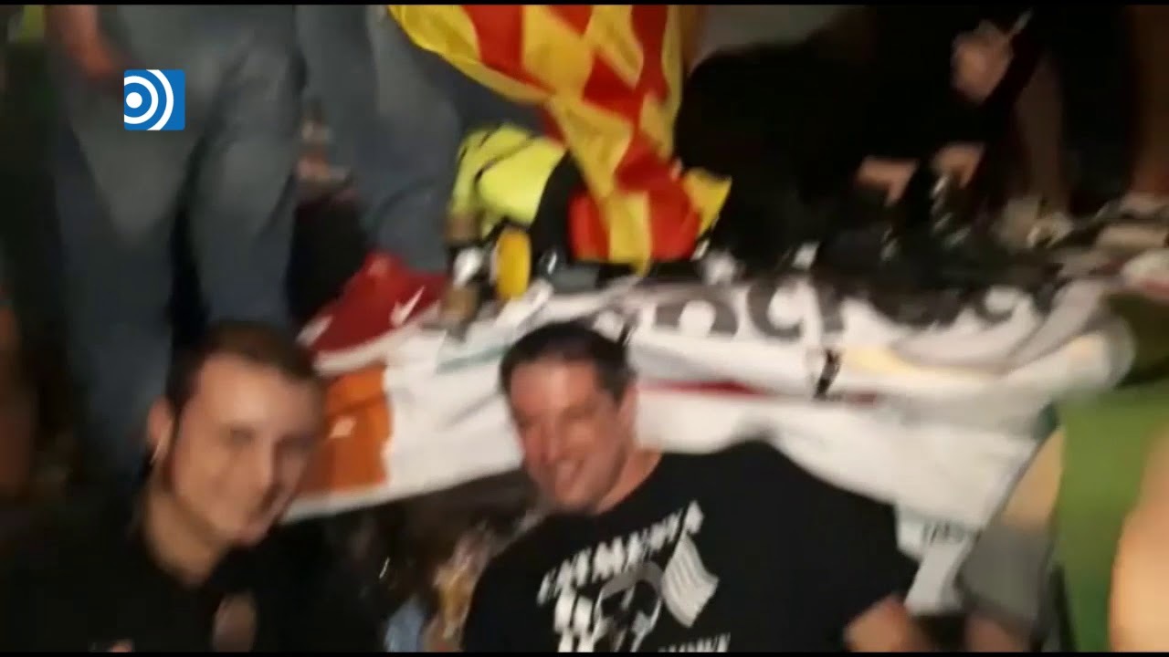 Los Mossos crearon un cordón de seguridad que abarcaba un pequeño tramo de la acera situada ante la sede de las dependencias de la consejería y el lateral de la Rambla, donde se encontraban tres vehículos de la Guardia Civil han quedado absolutamente destrozados por los manifestantes. Además, algunos de los concentrados han lanzado varios objetos contra la policía autonómica, especialmente latas de bebidas.