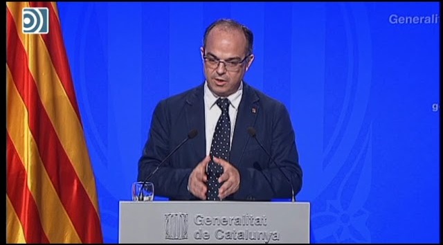 El portavoz del gobierno catalán,Jordi Turull, ha anunciado el cese de Josep Maria Jové y ha usado un tono bélico: "Dijeron que vendrían por tierra, mar y aire y ya están aquí".