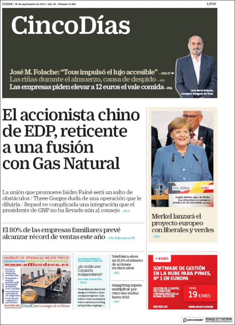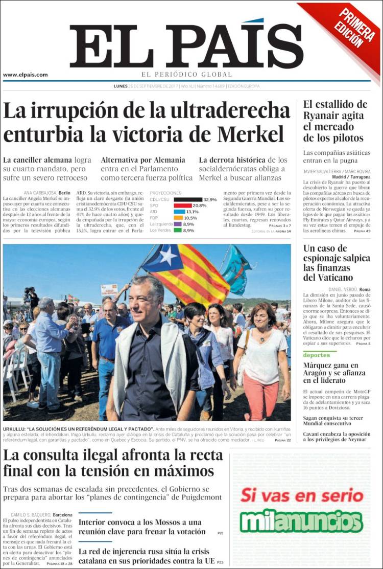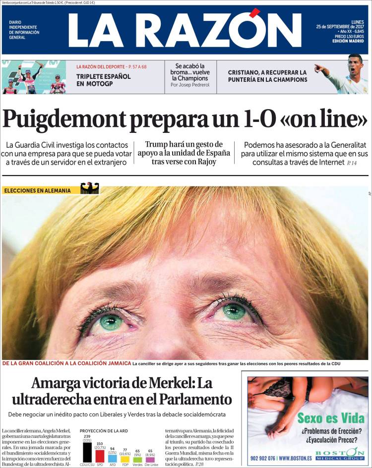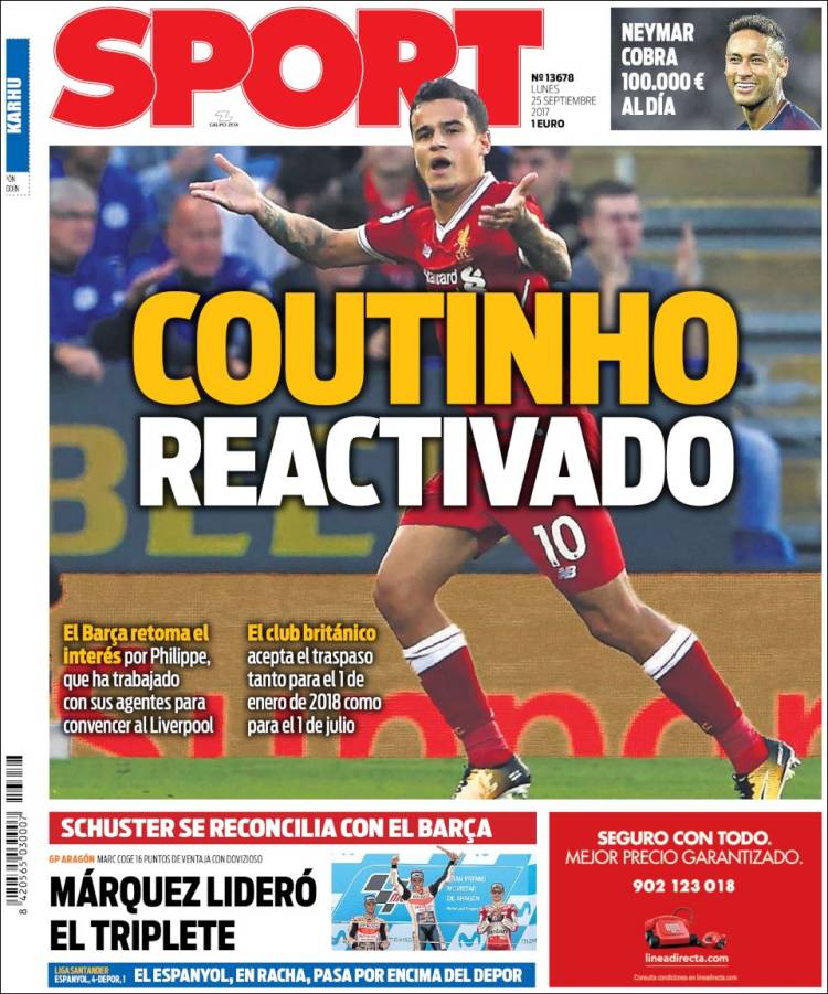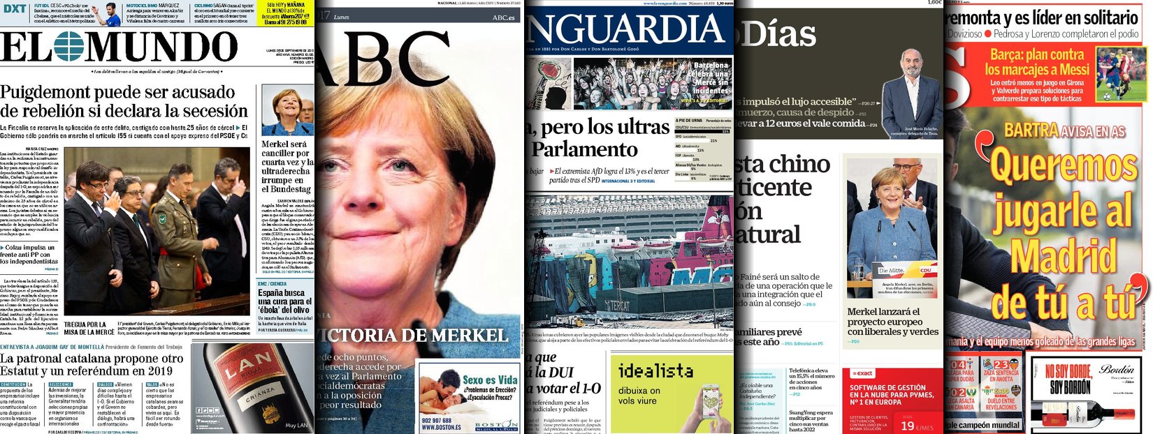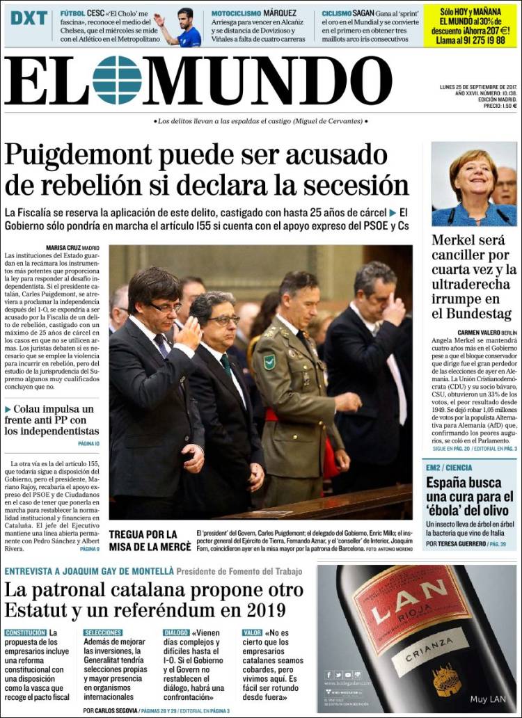 Portadas de los diarios El Mundo, El País, ABC, La Razón, La Vanguardia, El Periódico, Cinco Días, El Economista, Marca, As, Mundo Deportivo y Sport.