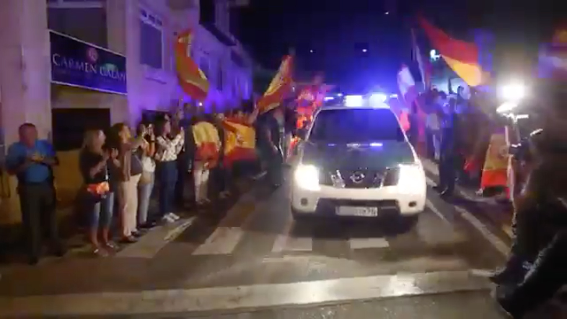 Decenas de ciudadanos han despedido a los efectivos de la Guardia Civil de Algeciras que han sido enviados a Cataluña.