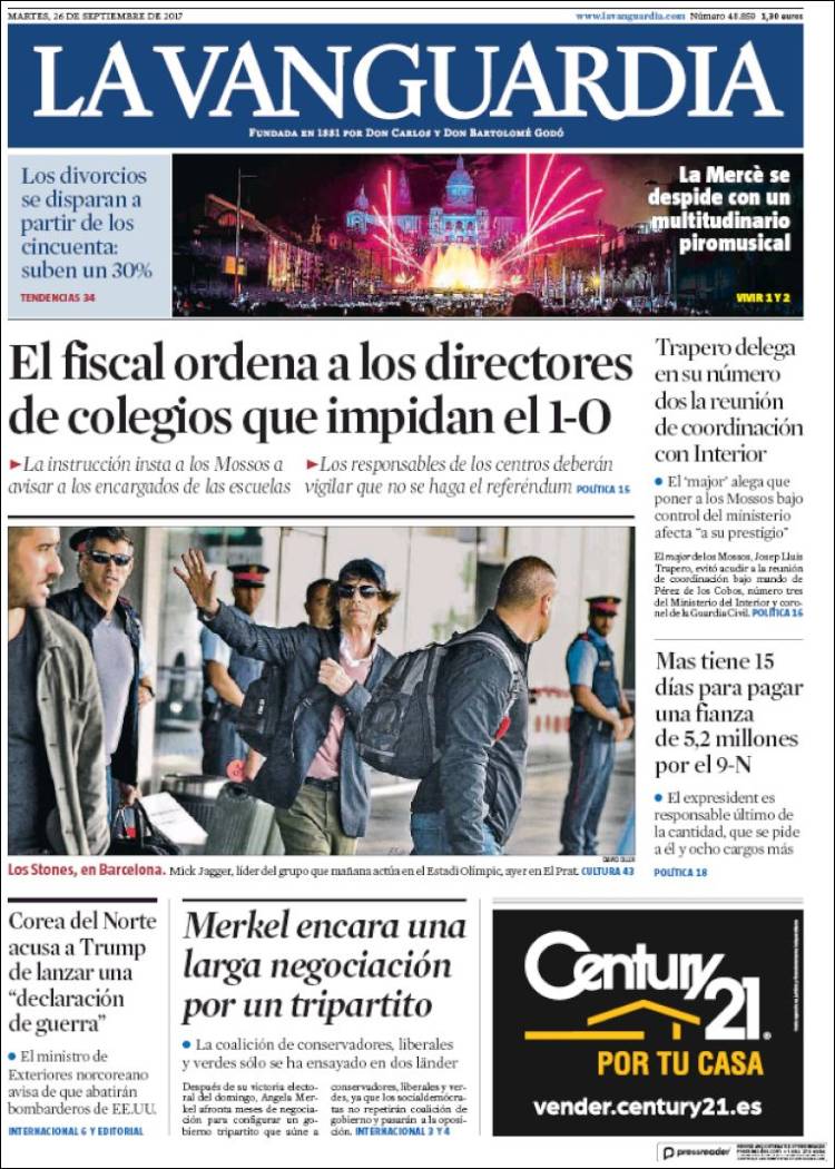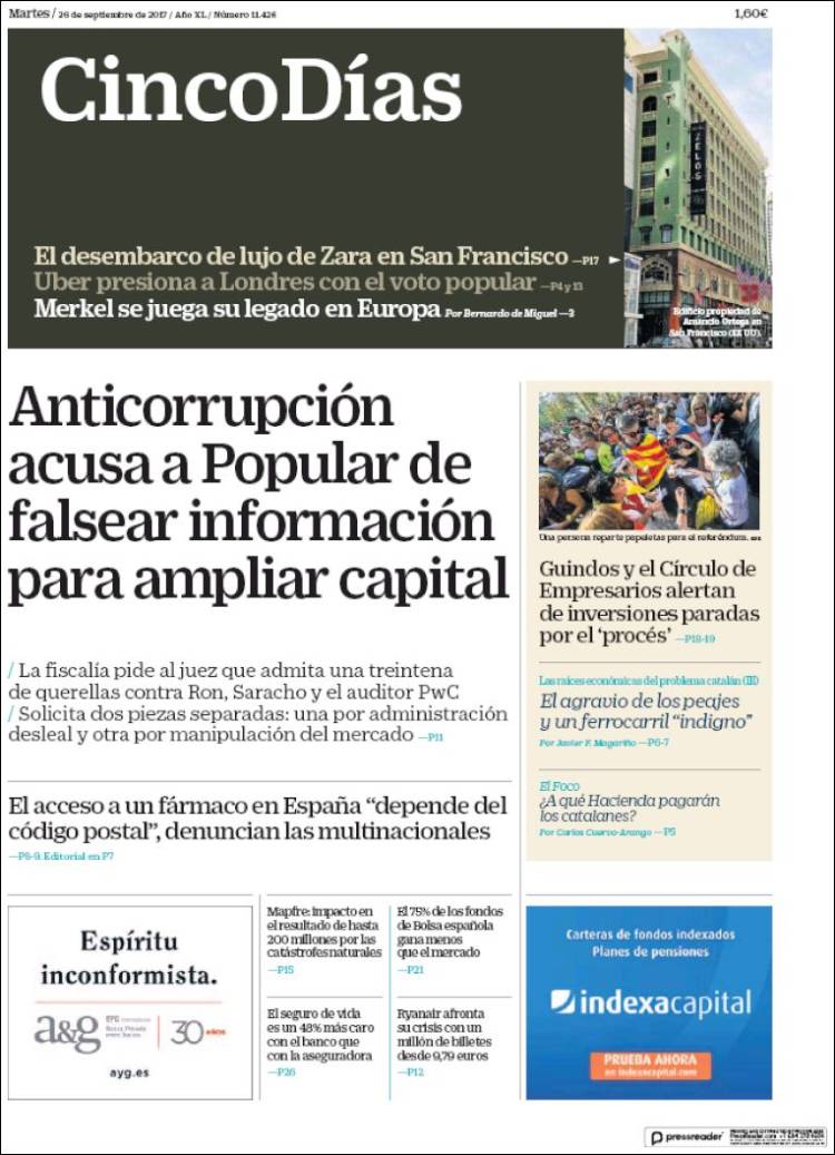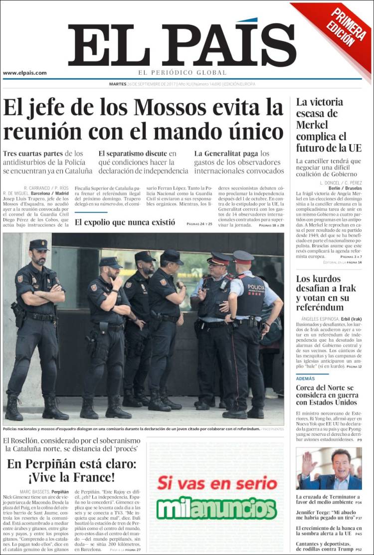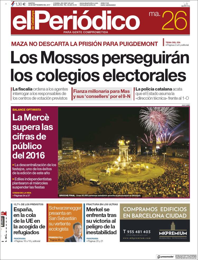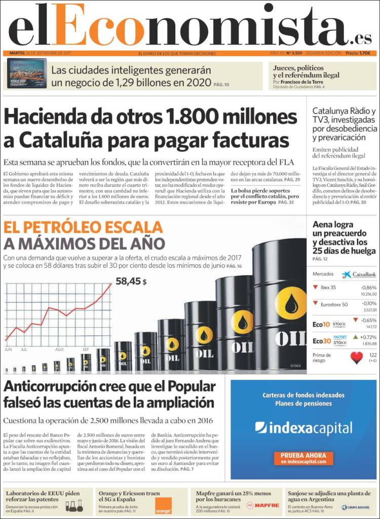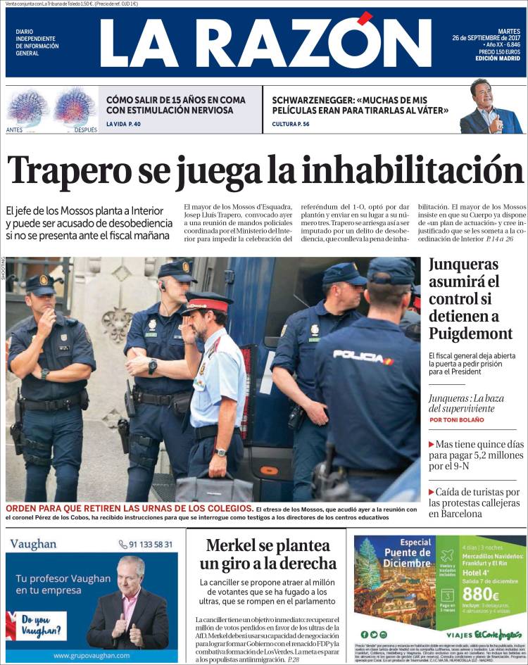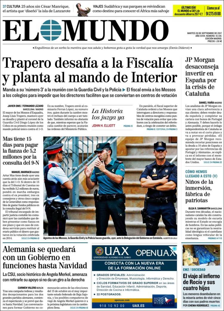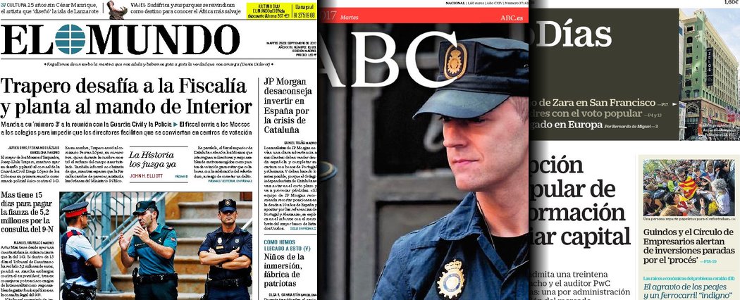 Portadas de los diarios El Mundo, El País, ABC, La Razón, La Vanguardia, El Periódico, Cinco Días, El Economista, Marca, As, Mundo Deportivo y Sport.