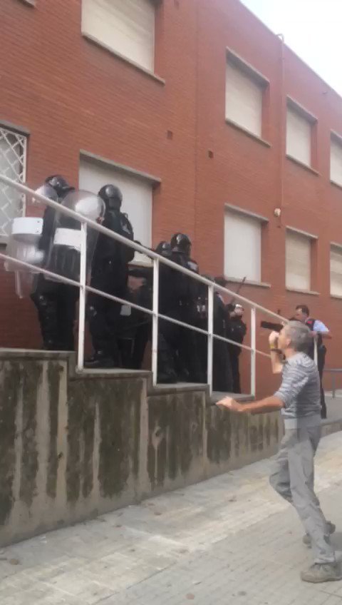 Dos agentes de los mossos intentaron entorpecer la actuación de los guardias civiles y hubo empujones en las escaleras de un centro de votación.