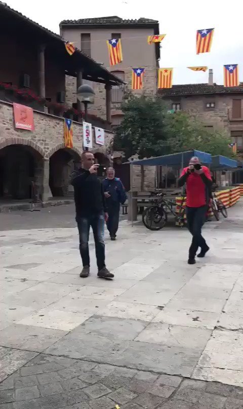 Los Mossos explicando a varios ciudadanos que no van a impedir el referéndum ilegal