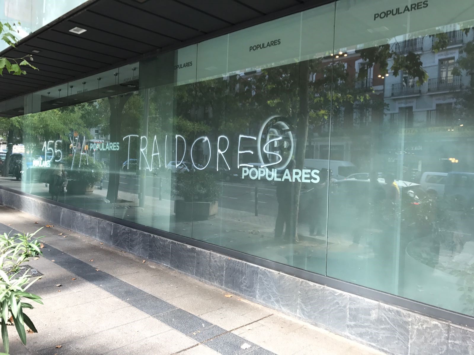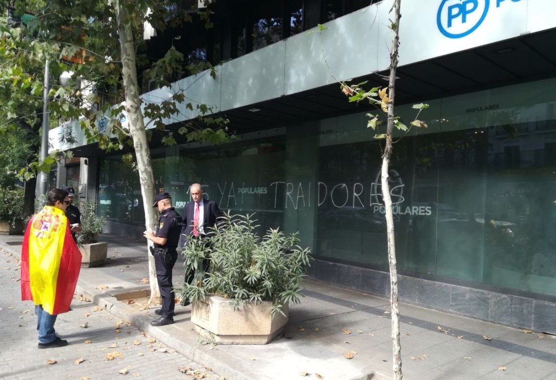 Aparecen pintadas de "traidores" en la sede del PP