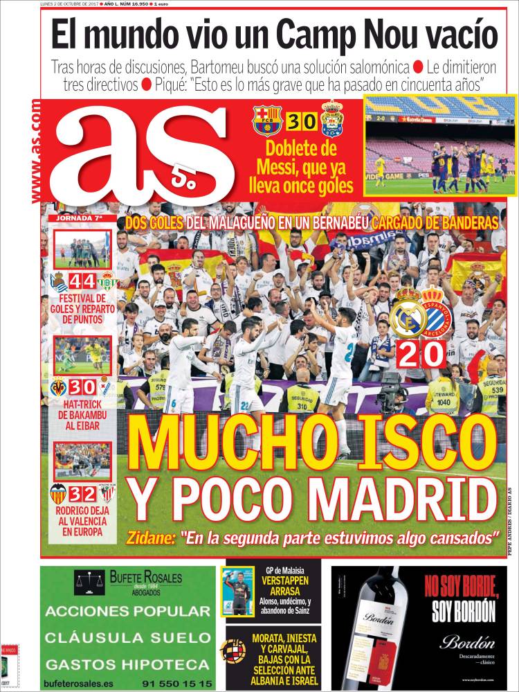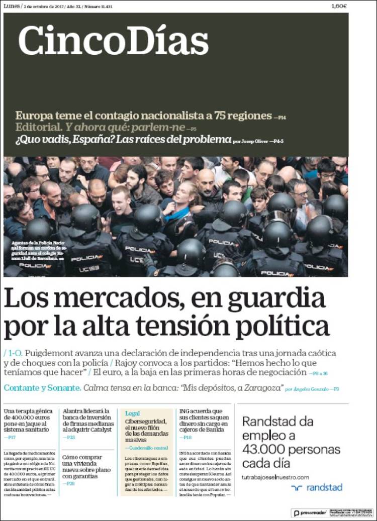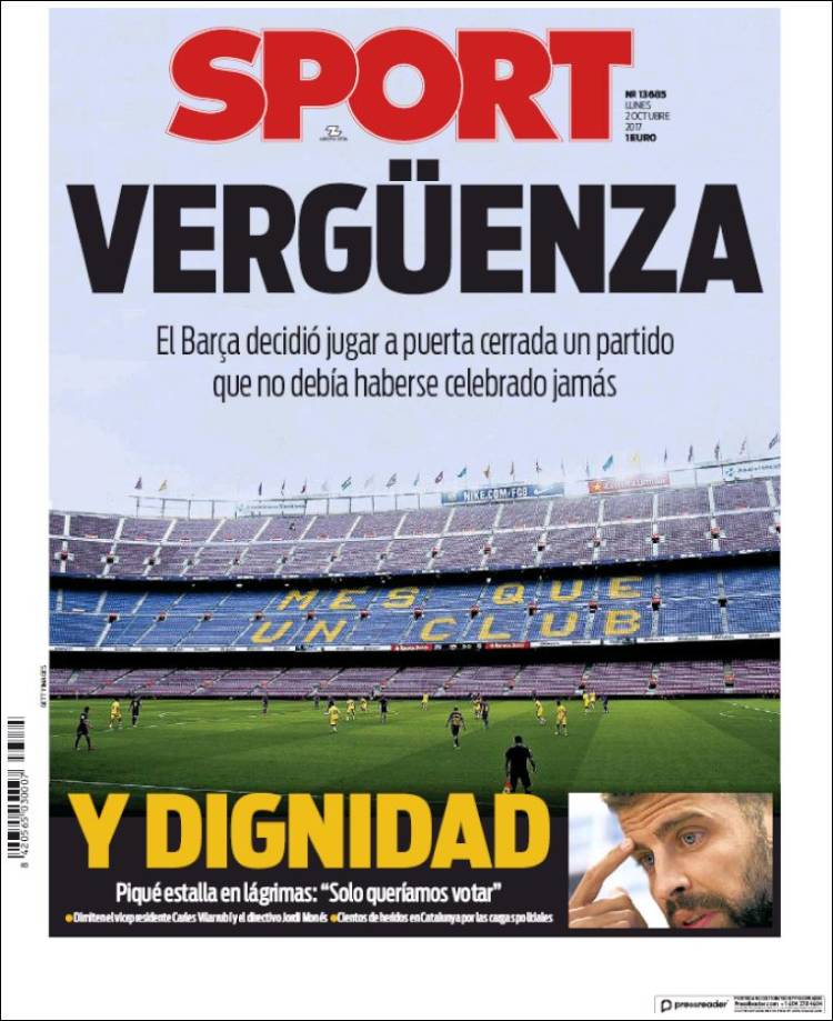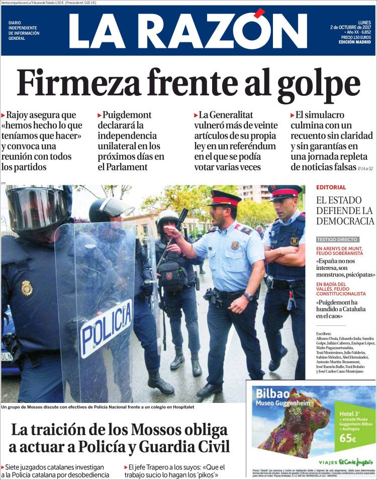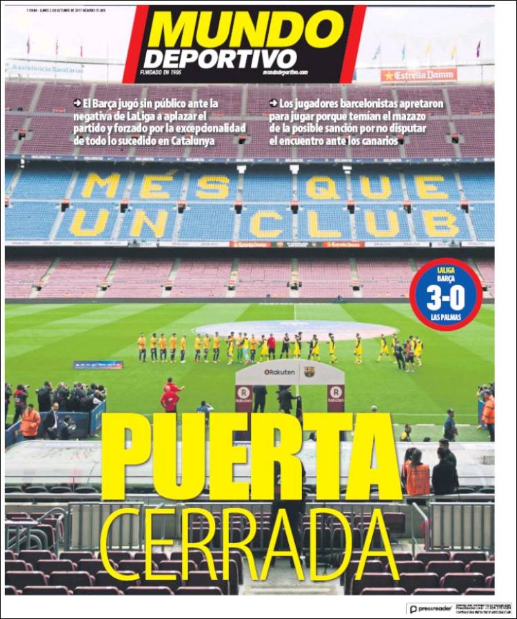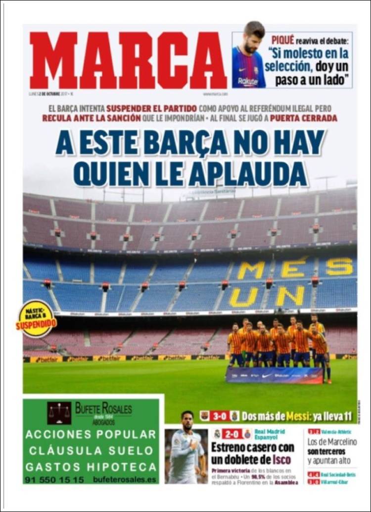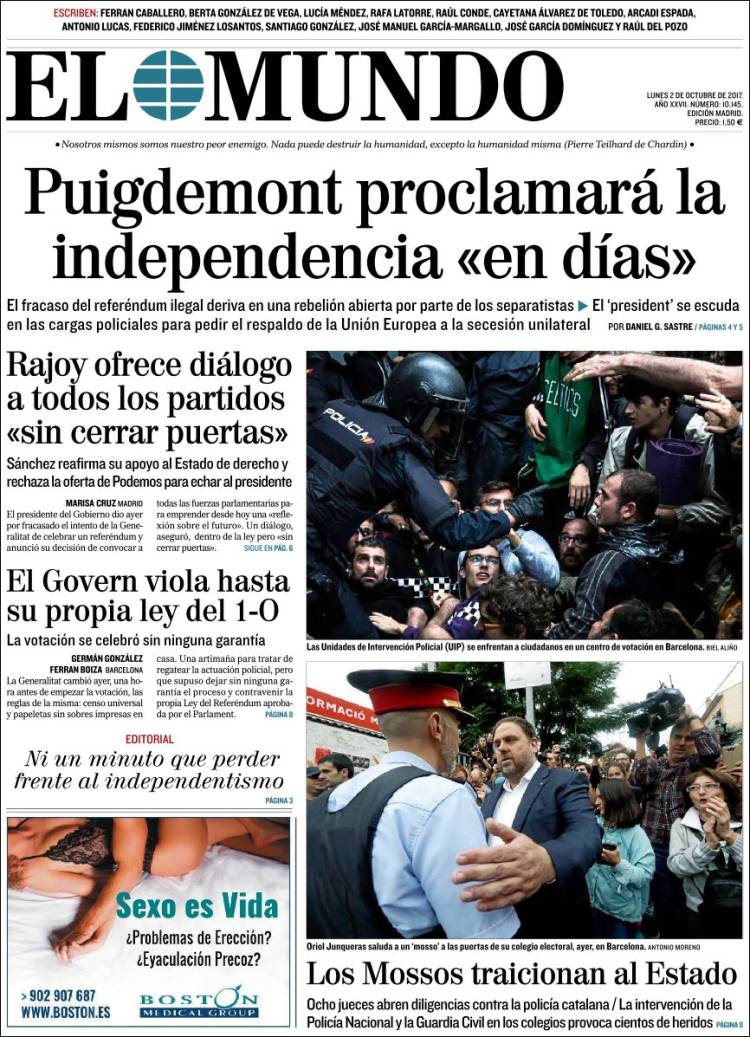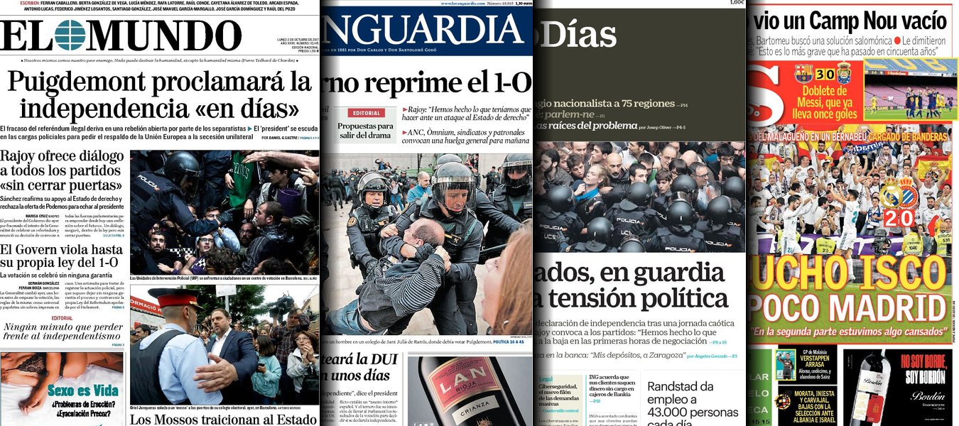 Portadas de los diarios El Mundo, El País, ABC, La Razón, La Vanguardia, El Periódico, Cinco Días, El Economista, Marca, As, Mundo Deportivo y Sport.