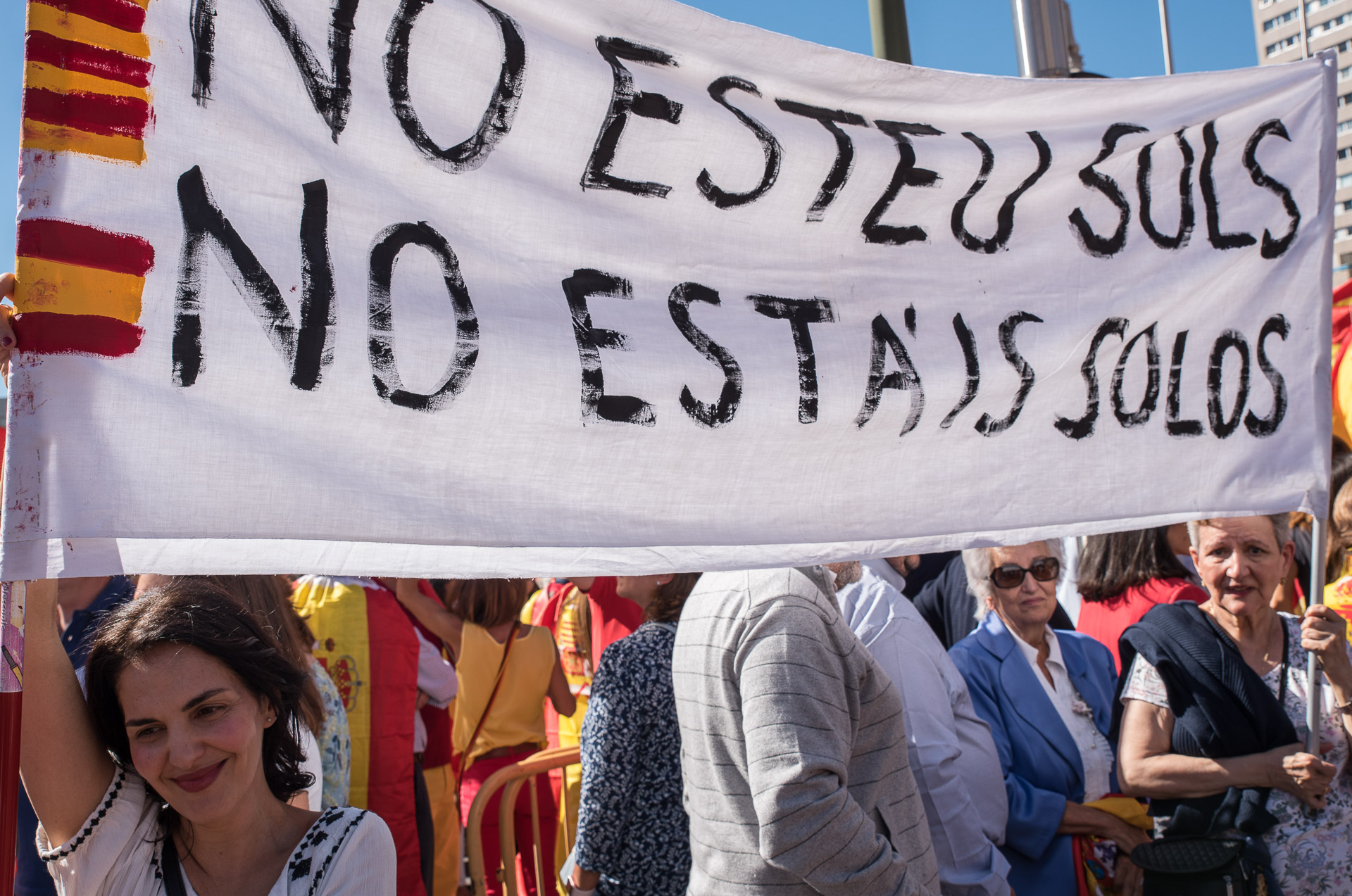 No ha habido demasiadas pancartas (la pancarta era la bandera) una de ellas pedía prisión para Puigdemont.