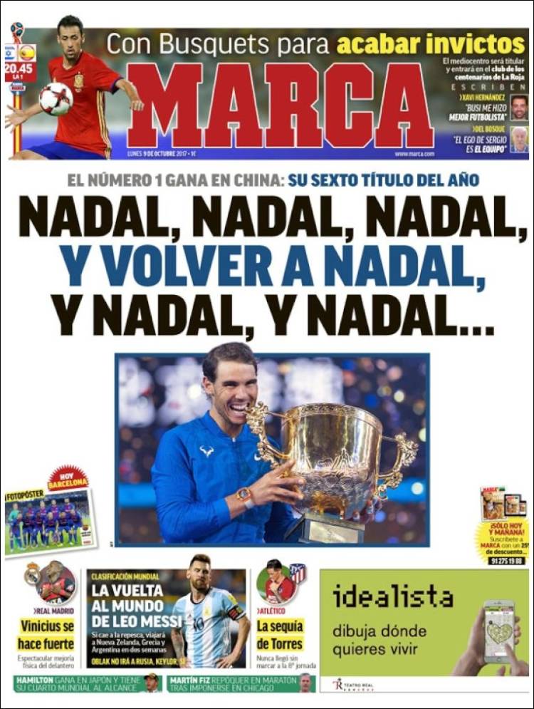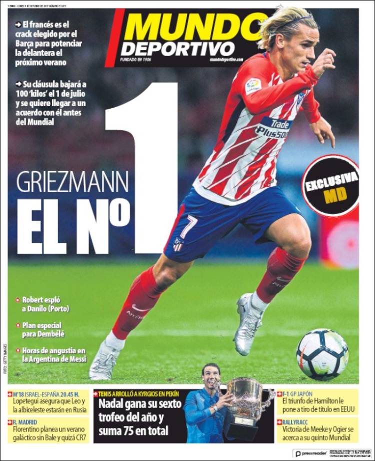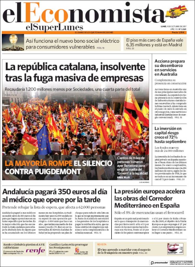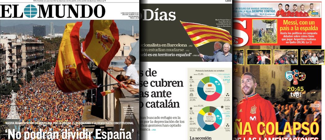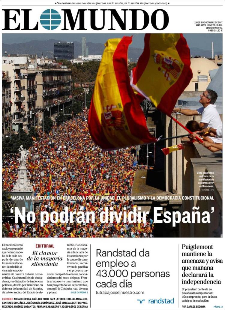 Portadas de los diarios El Mundo, El País, ABC, La Razón, La Vanguardia, El Periódico, Cinco Días, El Economista, Marca, As, Mundo Deportivo y Sport.
