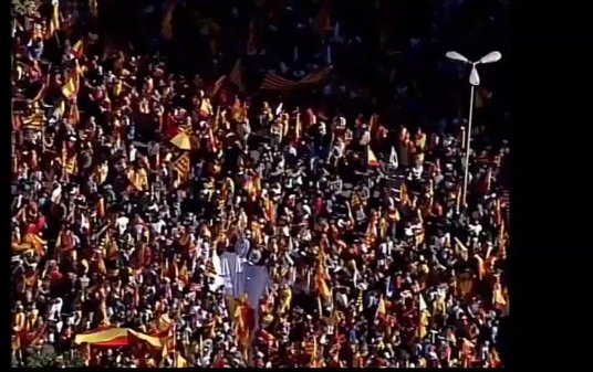 Vista aérea de la masiva manifestación en Barcelona a favor de la unidad de España
