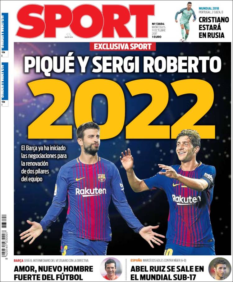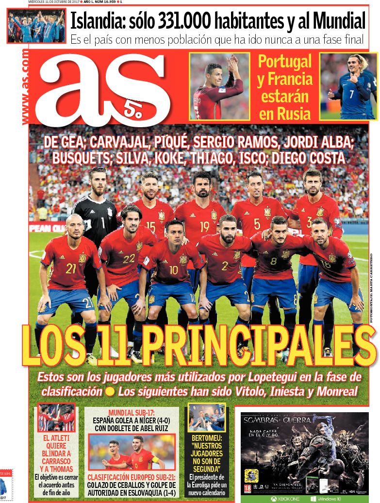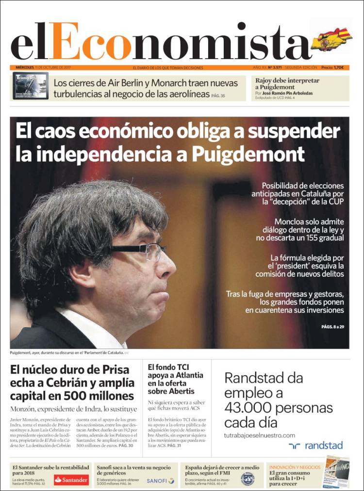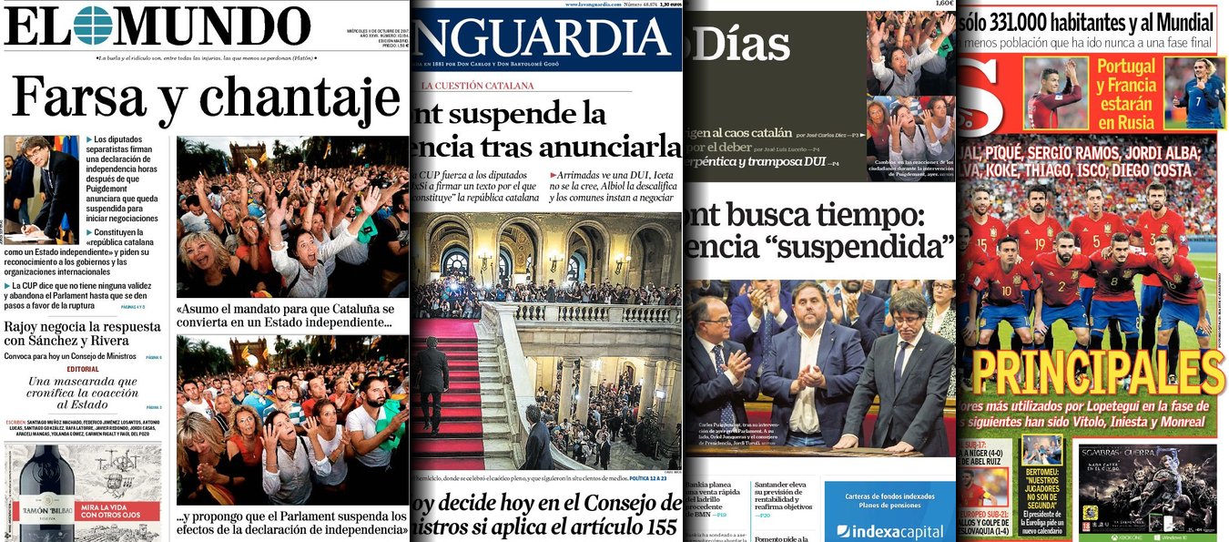 Portadas de los diarios El Mundo, El País, ABC, La Razón, La Vanguardia, El Periódico, Cinco Días, El Economista, Marca, As y Sport.
