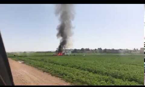 Restos del accidente del avión en el que murió su piloto tras participar en el desfile de la fiesta nacional.