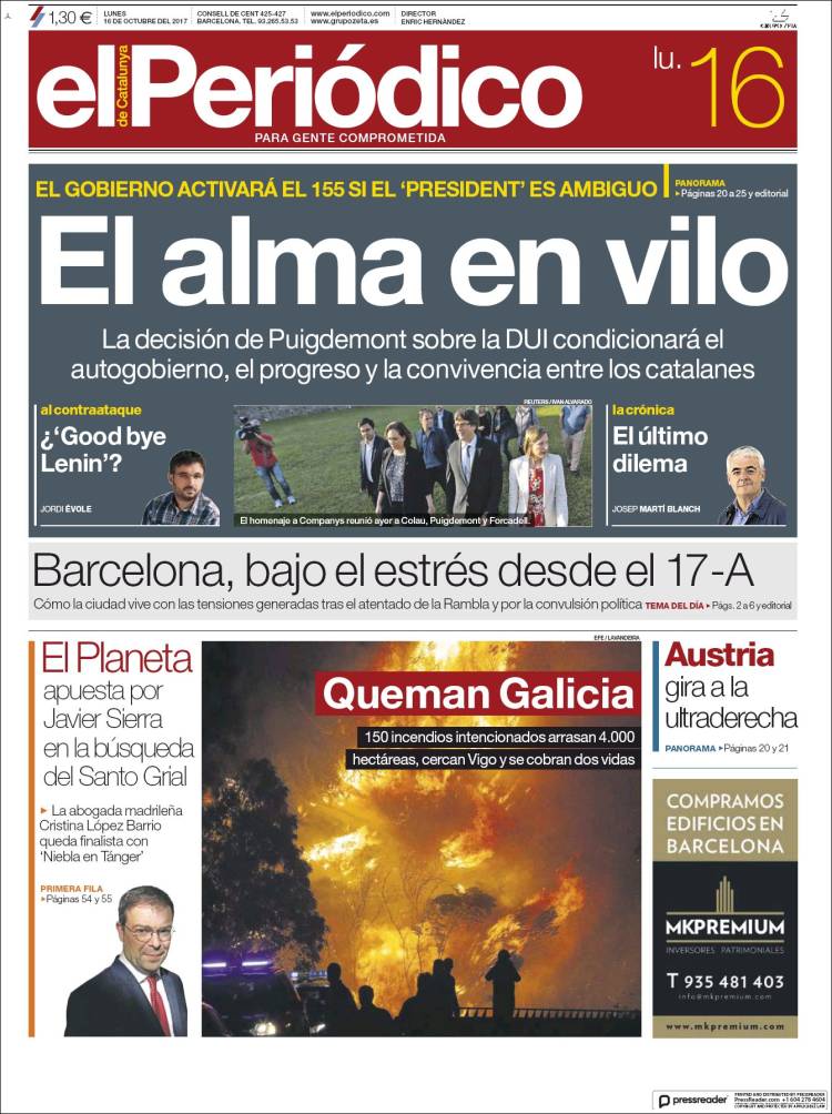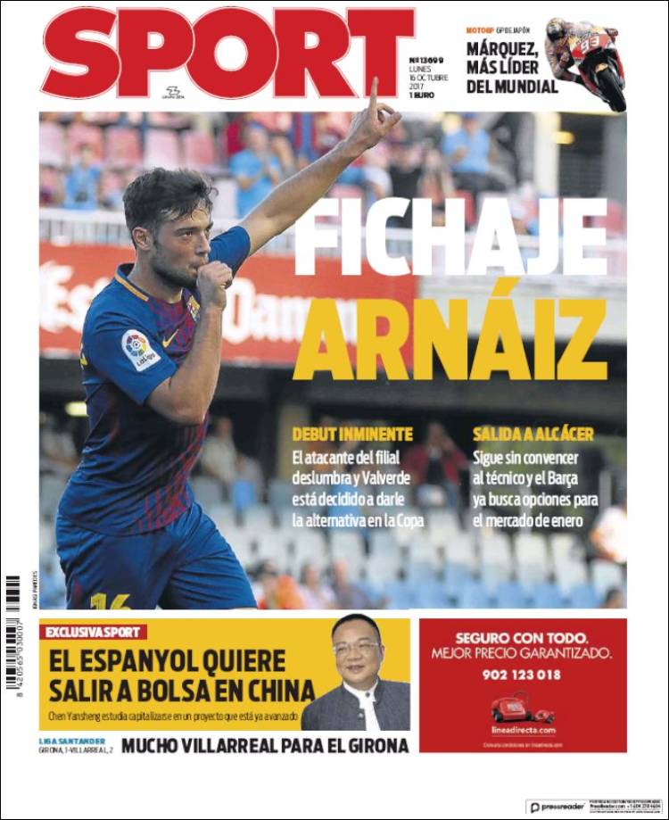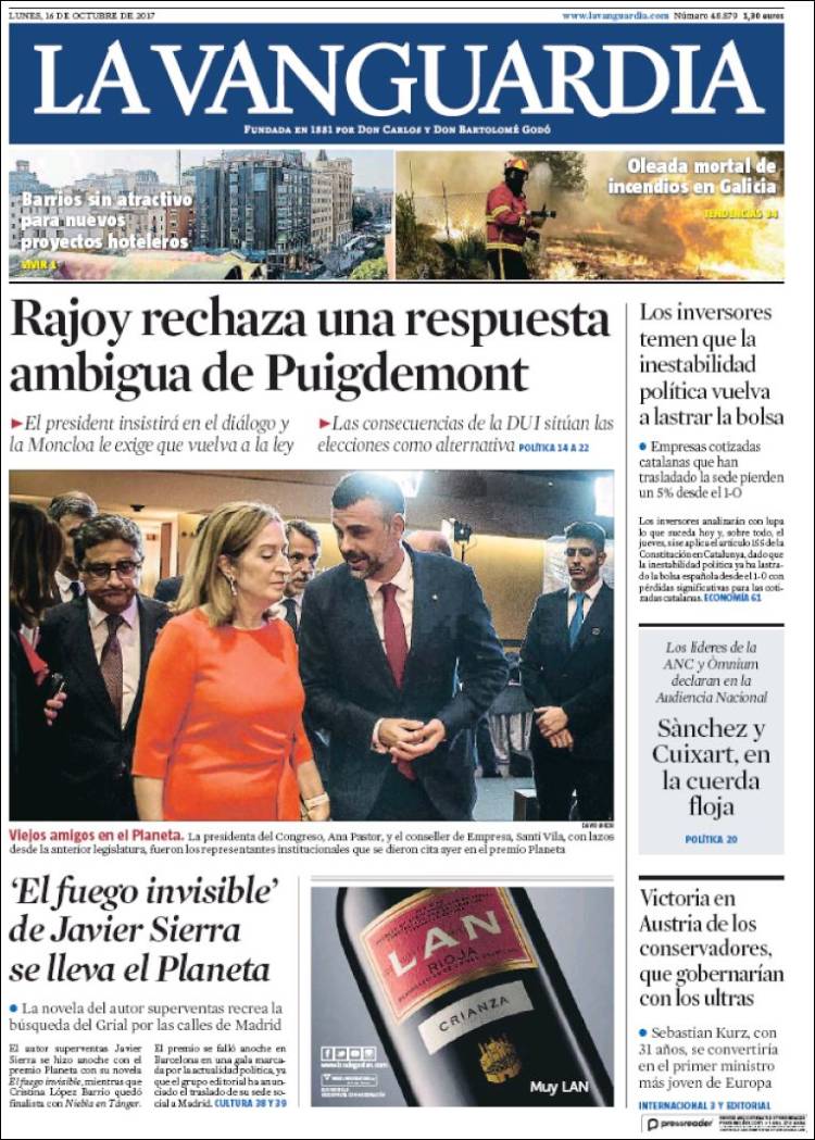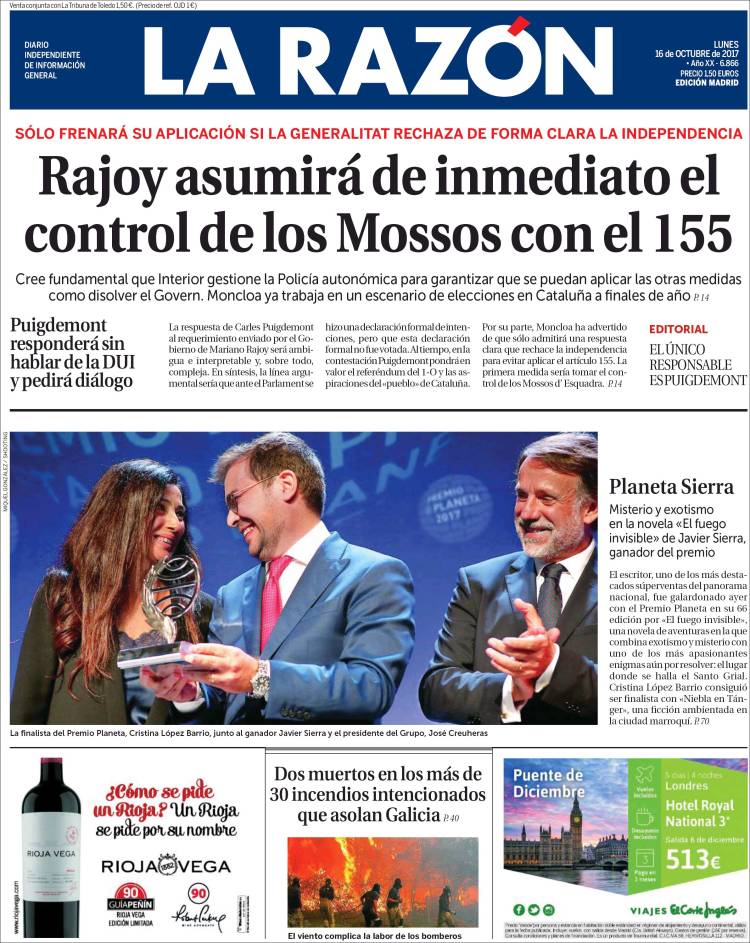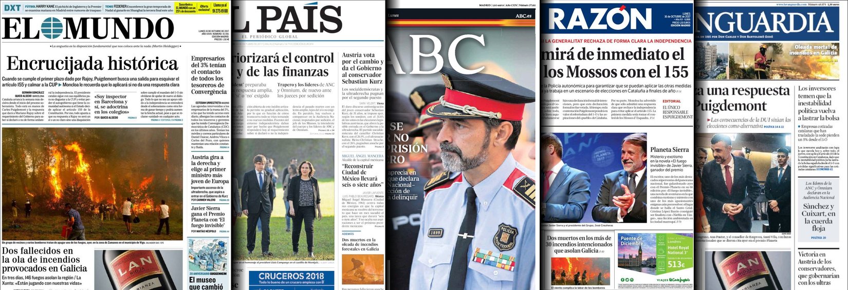 Portadas de los diarios El Mundo, El País, ABC, La Razón, La Vanguardia, El Periódico, Cinco Días, El Economista, Marca, Mundo Deportivo y Sport.