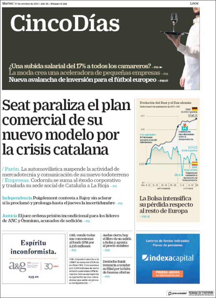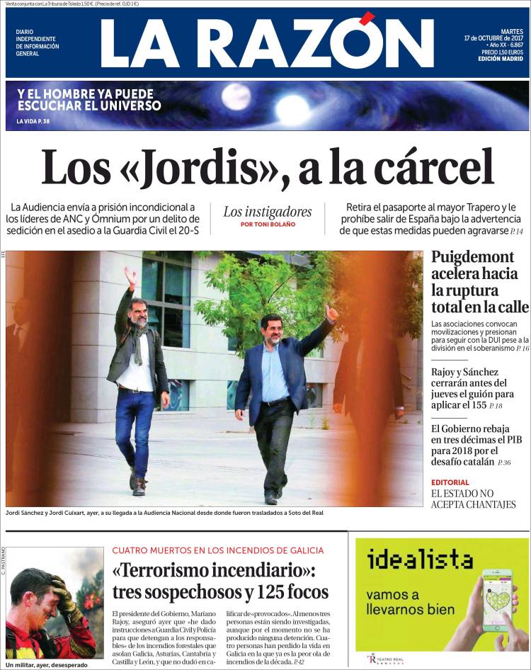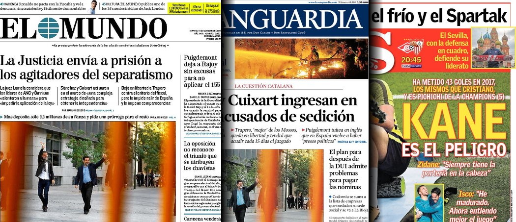 Portadas de los diarios El Mundo, El País, ABC, La Razón, La Vanguardia, El Periódico, Cinco Días, El Economista, Marca, As, Mundo Deportivo y Sport.