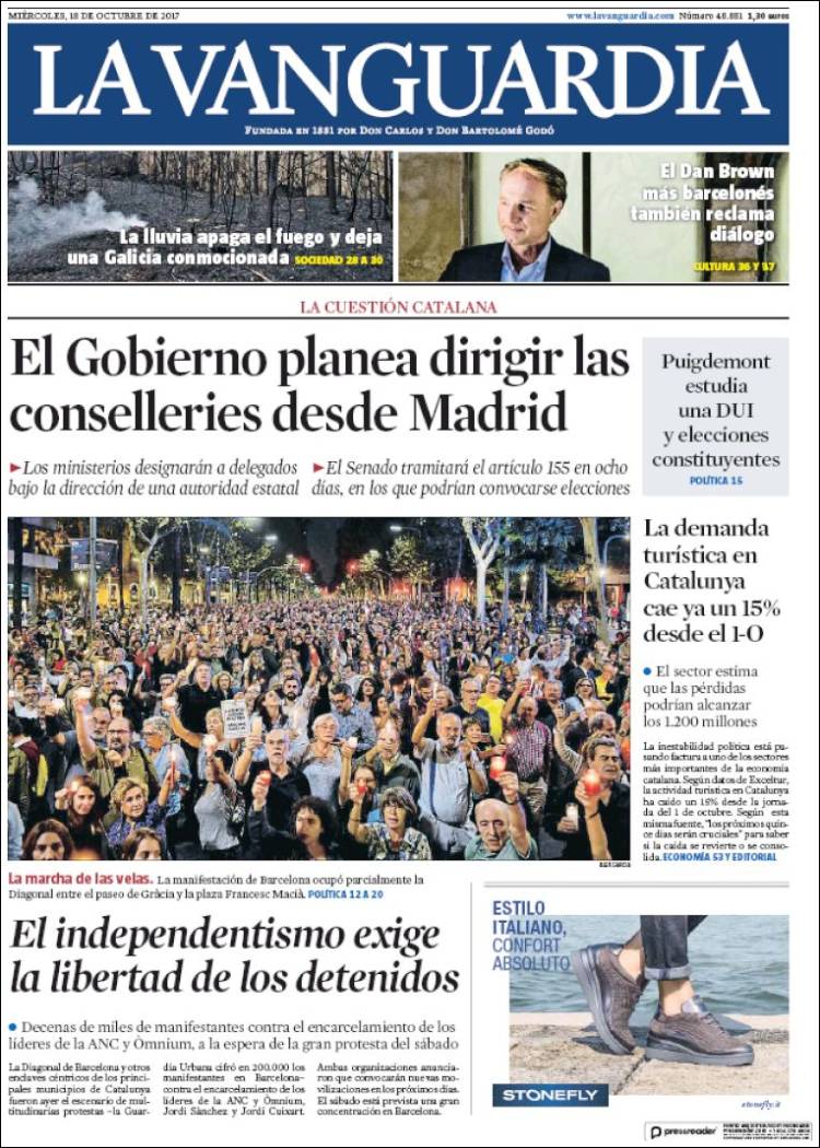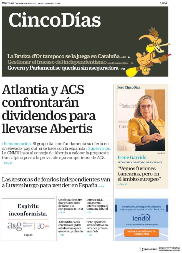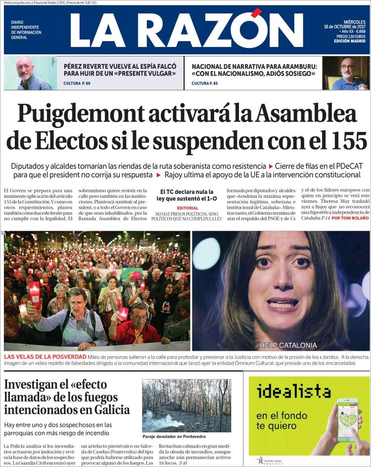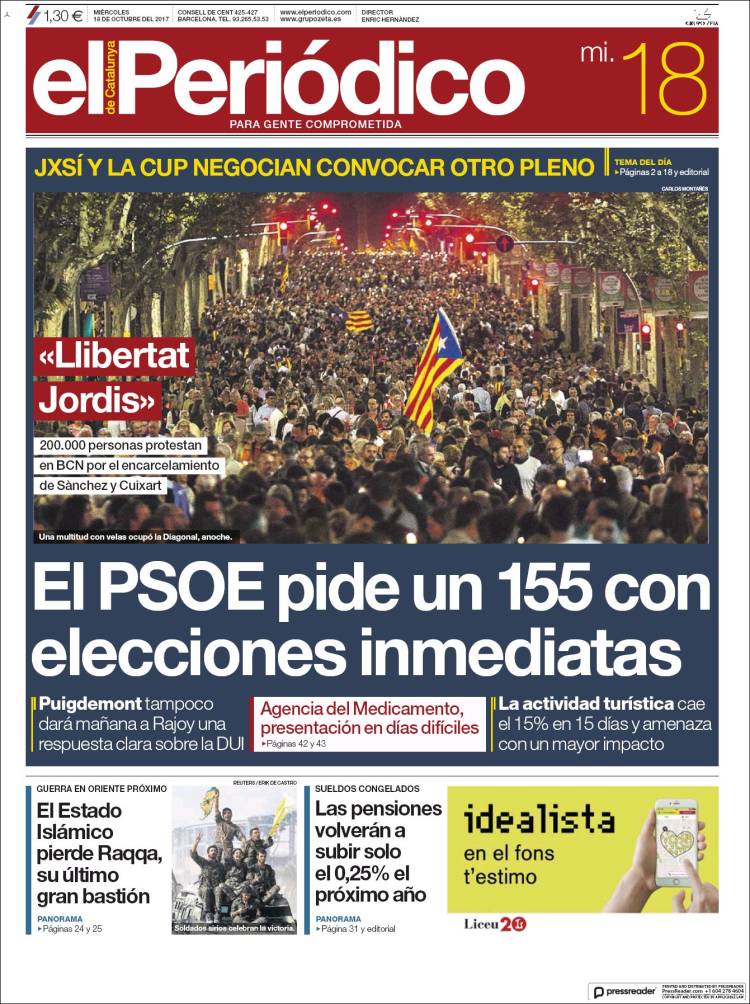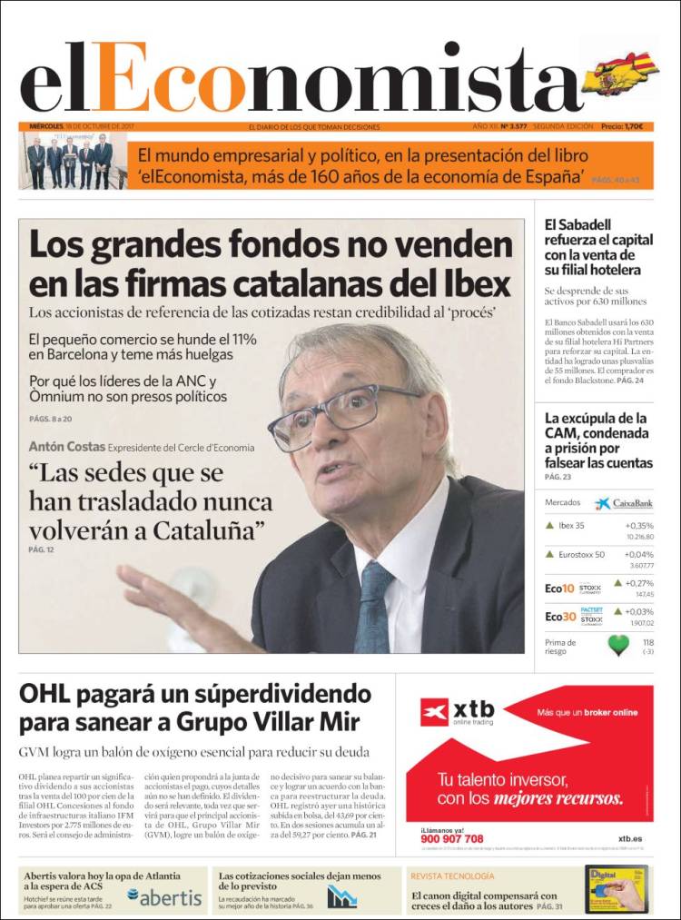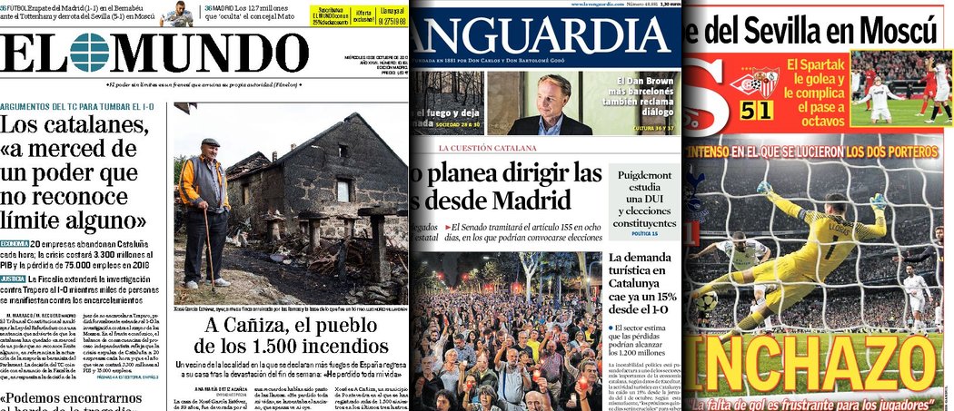 Portadas de los diarios El Mundo, El País, ABC, La Razón, La Vanguardia, El Periódico, Cinco Días, El Economista, Marca, As, Mundo Deportivo y Sport.
