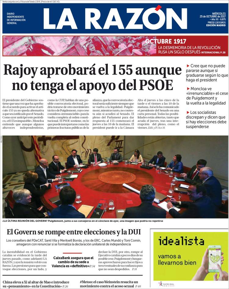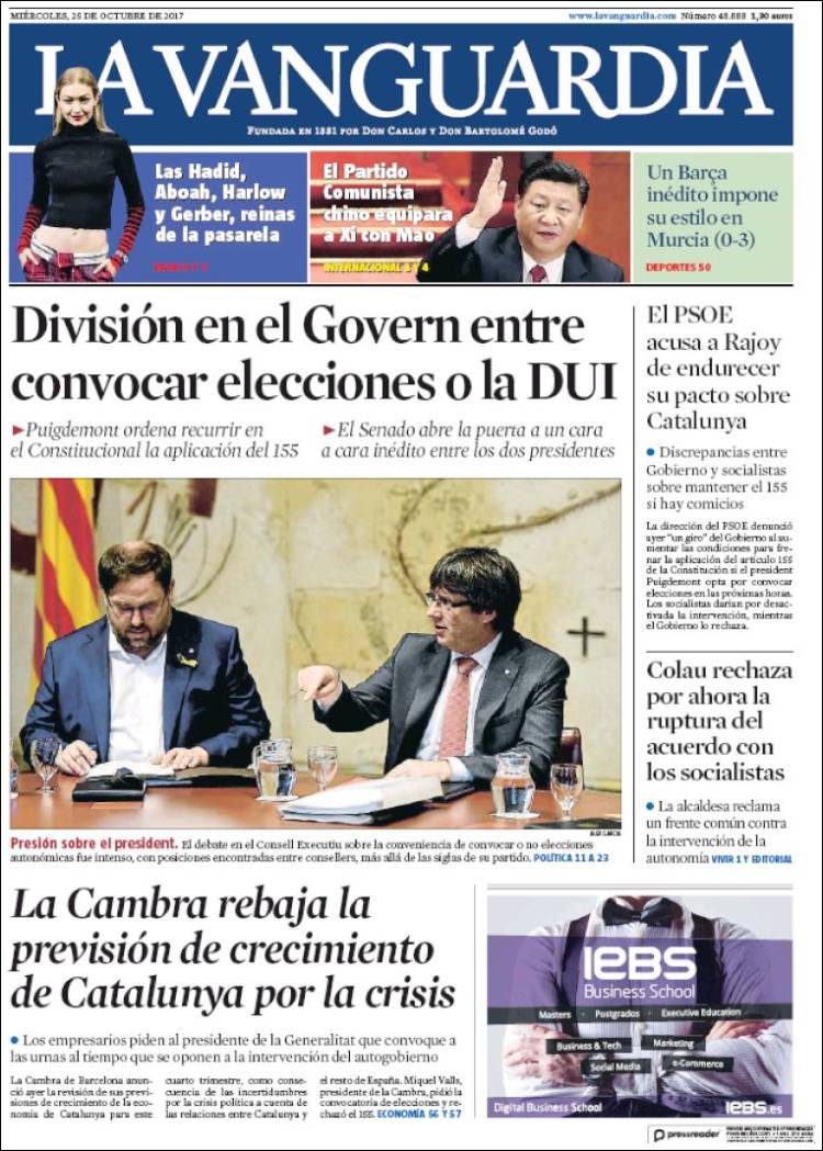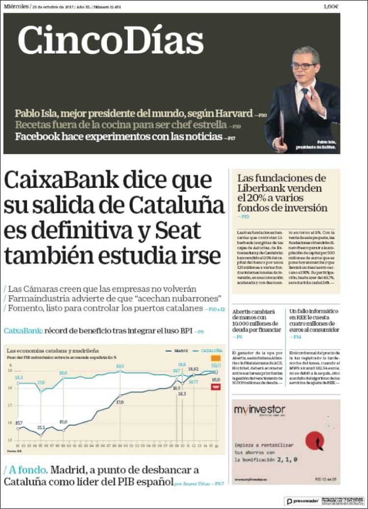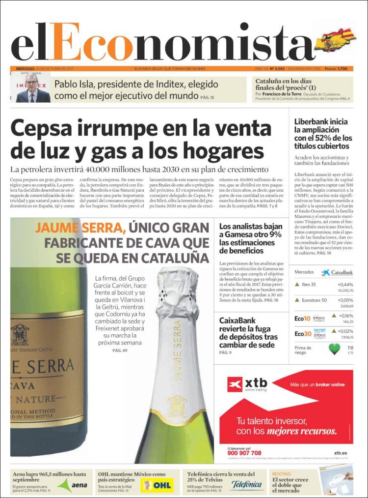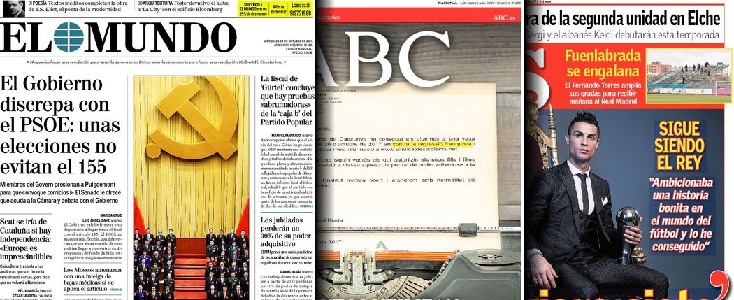 Portadas de los diarios El Mundo, El País, ABC, La Razón, La Vanguardia, El Periódico, Cinco Días, El Economista, Marca, As, Mundo Deportivo y Sport.