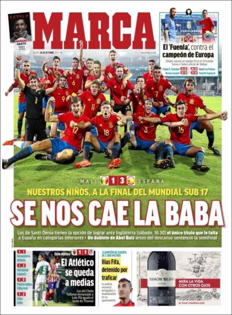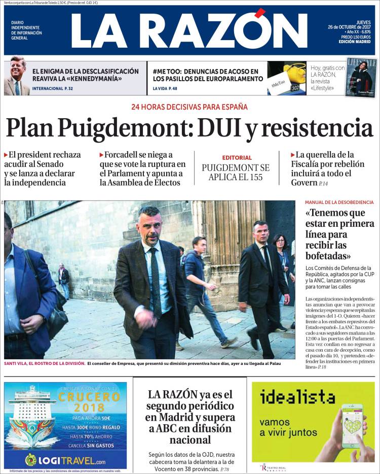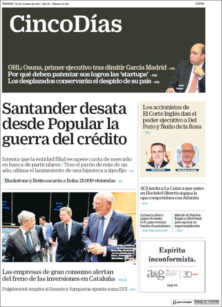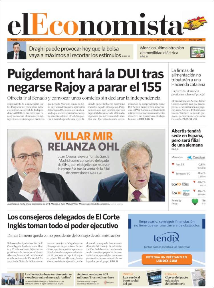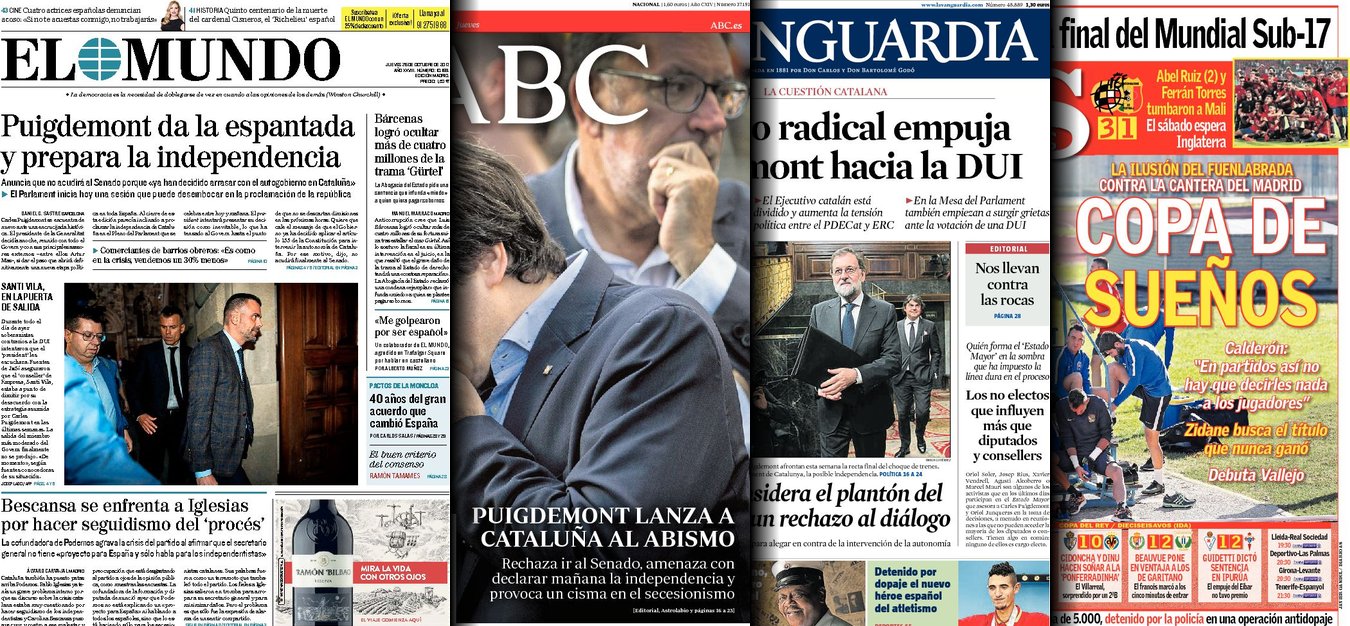 Portadas de los diarios El Mundo, El País, ABC, La Razón, La Vanguardia, El Periódico, Cinco Días, El Economista, Marca, As, Mundo Deportivo y Sport.