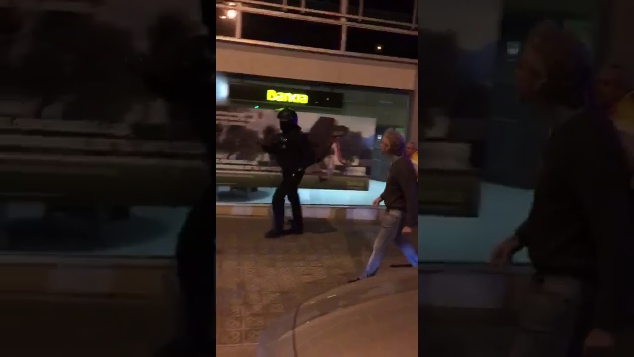 En el vídeo se ve a uno de esos "pacíficos" mossos pegando a uno de los manifestantes.