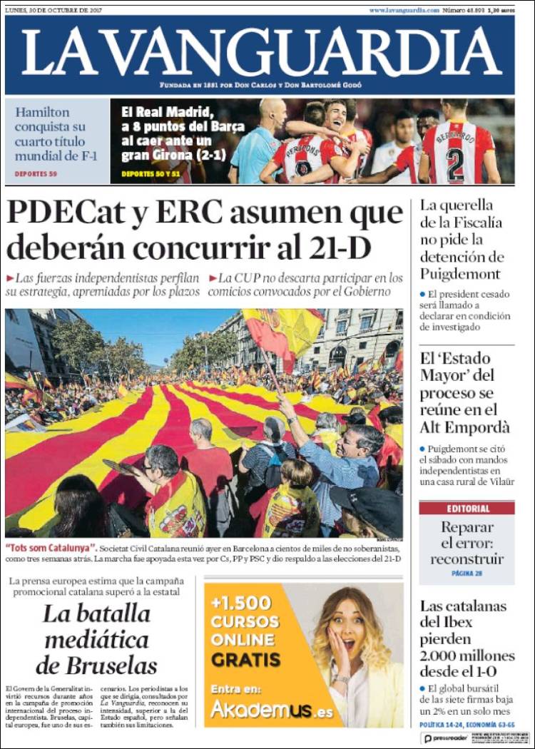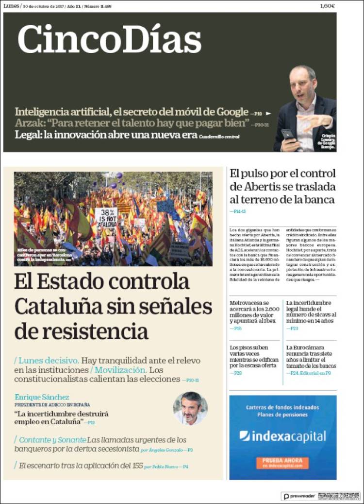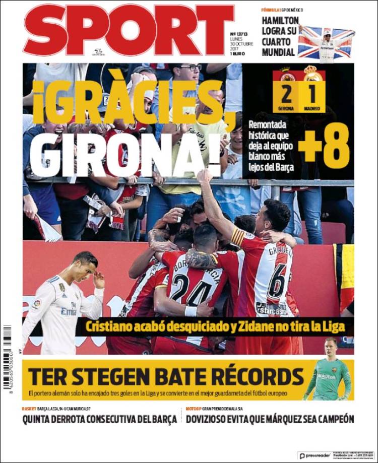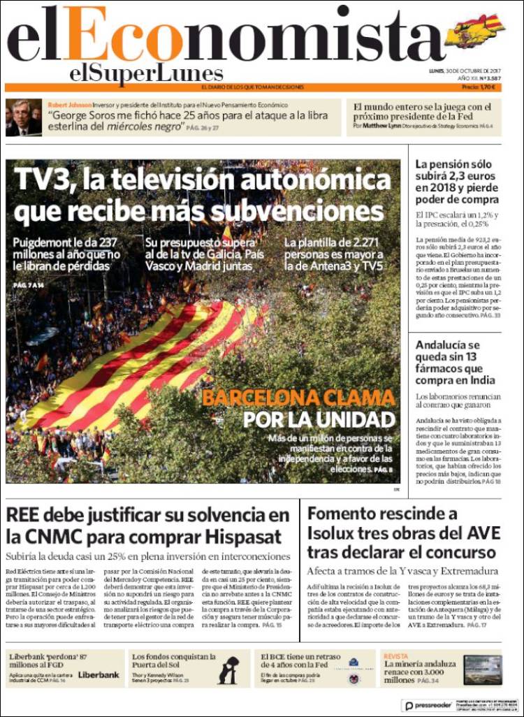 Portadas de los diarios El Mundo, El País, ABC, La Razón, La Vanguardia, El Periódico, Cinco Días, El Economista, Marca, As, Mundo Deportivo y Sport.